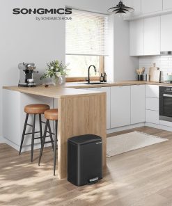 SONGMICS Mülleimer, Mülleimer mit Deckel, 20 l, Stufen-Mülleimer für Küche, Edelstahl, Absenkautomatik und bleibt offen, Inneneimer, inklusive 15 Müllbeutel, Schwarz ULTB543B01