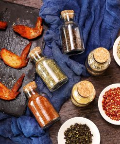 Praknu Gewürzgläser mit Korken 150ml – 12er Set mit Etiketten – Luftdicht – inkl. Geschenkbox