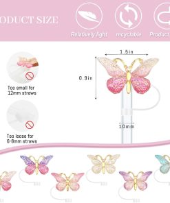 Hebterrka Thermobecher Zubehör Mit 6 Bunten Schmetterling Staubschutzkappen, Strohhalme Schutz Für 40/30oz Reisebecher, Dichtung Deckel, Sicher Und Dicht