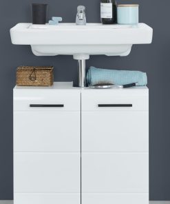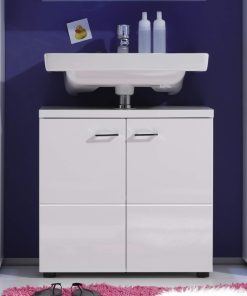 trendteam smart living – Skin – Waschbeckenunterschrank – Weiß Hochglanz – Waschtisch mit 2 Türen und 1 Einlegeboden – (BxHxT) 60 x 56 x 31 cm – Kontrastreiche Griffe