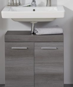 trendteam smart living – Runner – Badschrank – Grau – Waschbeckenunterschrank mit 2 Türen, 1 Einlegeboden – (BxHxT) 58 x 57 x 31 cm – silberfarbener Griff