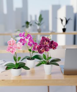 PASCH® Artificial Flowers in Pot (35 cm) – Set of 3 Orchids Artificially Matched Arrangement in High Gloss Ceramic Pots, Decorative Flowers Artificial Orchids (Purple-Rose)