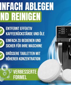 Die 100 Reinigungstabletten haben bei mir tadellos funktioniert: sie entfernen Kaffeefett zuverlässig, hinterlassen keinen störenden Geruch und sind sehr einfach anzuwenden. Das große Pack ist preiswert und passt zu den meisten gängigen Maschinen, sodass man lange vorrätig ist. Klare Kaufempfehlung für alle, die ihren Kaffeevollautomaten sauber halten wollen.