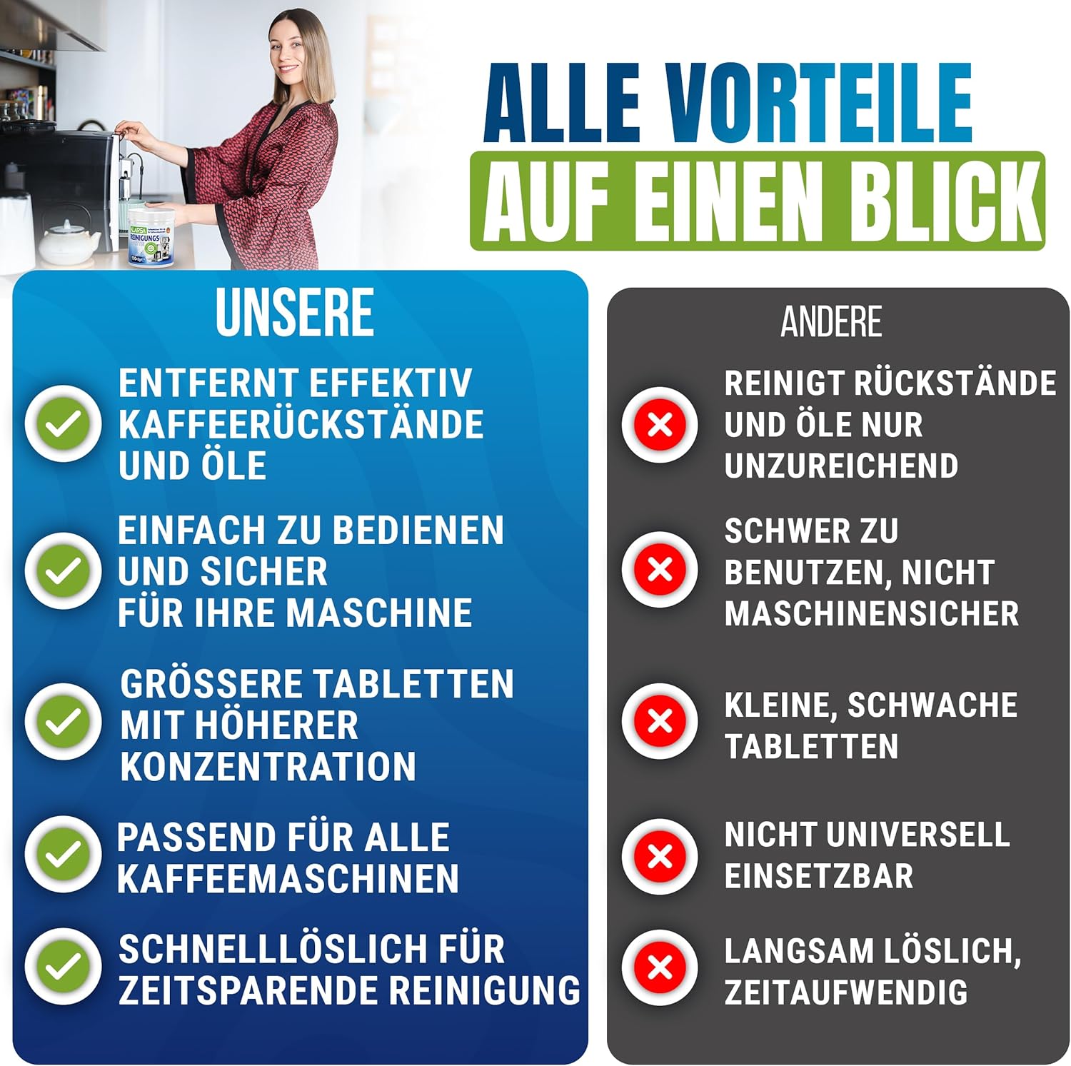 - ✅ 𝗗𝗘𝗨𝗧𝗦𝗖𝗛𝗘 𝗣𝗥𝗘𝗠𝗜𝗨𝗠-𝗤𝗨𝗔𝗟𝗜𝗧Ä𝗧 – 𝗪𝗘𝗜𝗟 𝗜𝗛𝗥𝗘 𝗚𝗘𝗦𝗨𝗡𝗗𝗛𝗘𝗜𝗧 𝗔𝗡 𝗘𝗥𝗦𝗧𝗘𝗥 𝗦𝗧𝗘𝗟𝗟𝗘 𝗦𝗧𝗘𝗛𝗧: Die kaffeefettreiniger Formel aus Deutschland bietet eine sichere und effektive Reinigung ohne empfindliche Teile Ihrer Maschine zu beschädigen. Unsere kaffeereiniger tablets lösen sich vollständig auf hinterlassen keine Rückstände und entfernen selbst hartnäckiges fett Ein zuverlässiger entferner für eine langanhaltende Maschinenleistung.