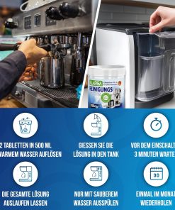 - ✅ 𝗦𝗖𝗛Ü𝗧𝗭𝗧 𝗜𝗛𝗥𝗘 𝗞𝗔𝗙𝗙𝗘𝗘𝗠𝗔𝗦𝗖𝗛𝗜𝗡𝗘 𝗨𝗡𝗗 𝗩𝗘𝗥𝗟Ä𝗡𝗚𝗘𝗥𝗧 𝗗𝗜𝗘 𝗟𝗘𝗕𝗘𝗡𝗦𝗗𝗔𝗨𝗘𝗥: Unser kaffeemaschinenreiniger verhindert Ablagerungen im Inneren Ihrer Maschine reduziert Störungen und erhält eine stabile Leistung. Die kaffeereiniger-tabletten und fettlösetabletten unterstützen die regelmäßige Pflege Ihrer Maschine und sorgen für eine gründliche Reinigung aller Komponenten. Geeignet für maschinenreiniger Programme und kompatibel mit Siebträgermaschinen Espressomaschinen Senseo Philips Avanza Melitta Ninja Delonghi Gastroback AEG Tassimo Sage Saeco Nivona WMF und EQ-Series.