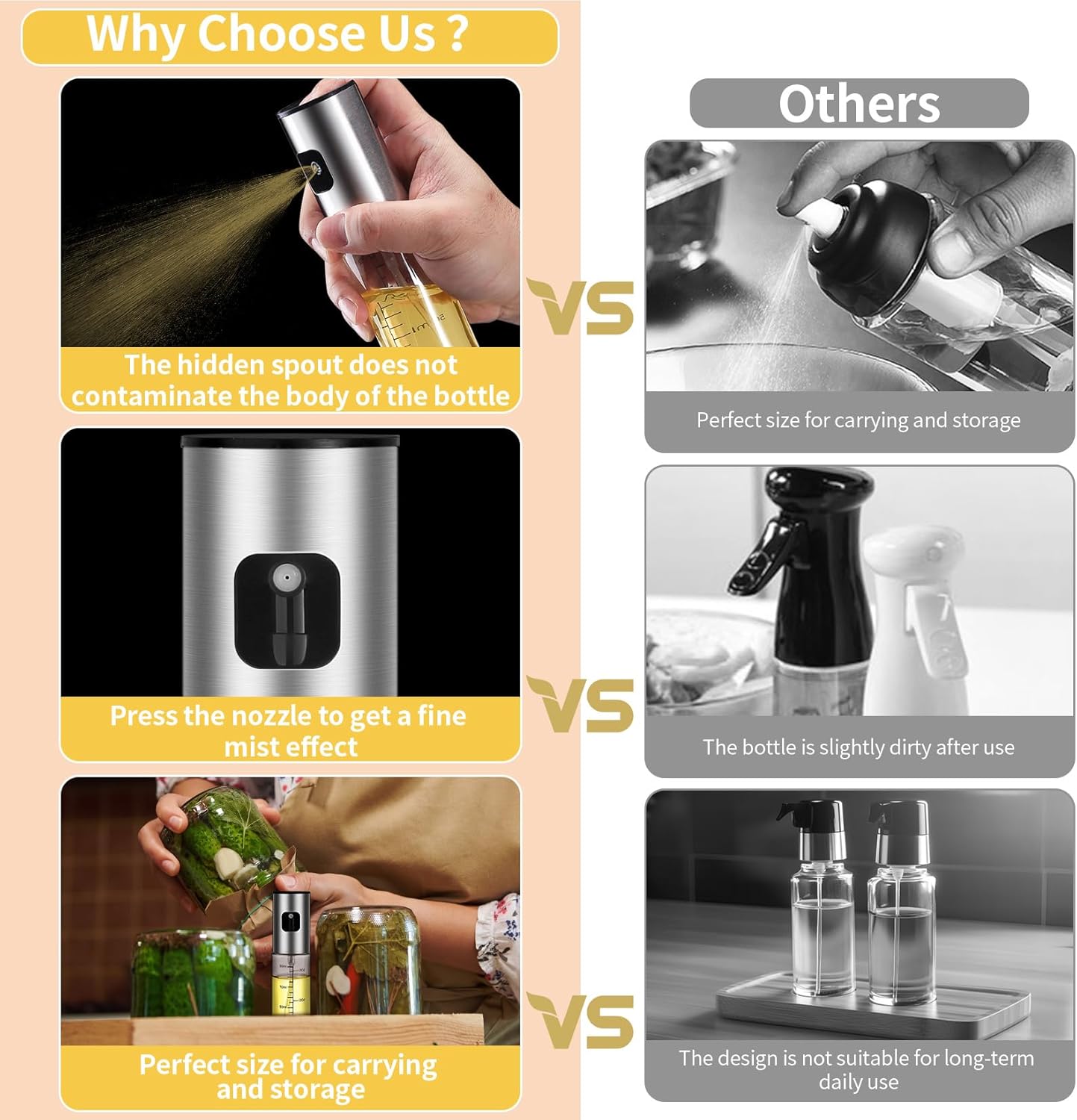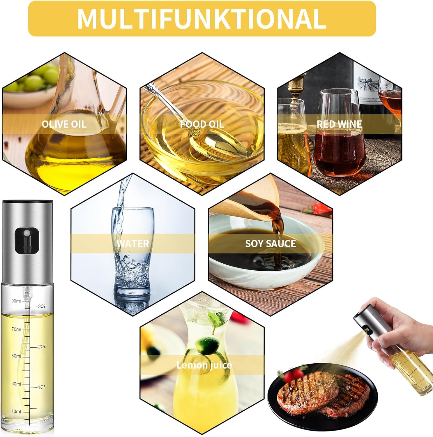 - Ergonomisches Design: öl sprühflasche verfügt über ein ergonomisches Design, sanftes Drücken, Einhandbedienung und leichtes Drücken; öl spray verfügt über ein Gewindemunddesign, das die Abdichtung verbessert und Öllecks verhindert.
