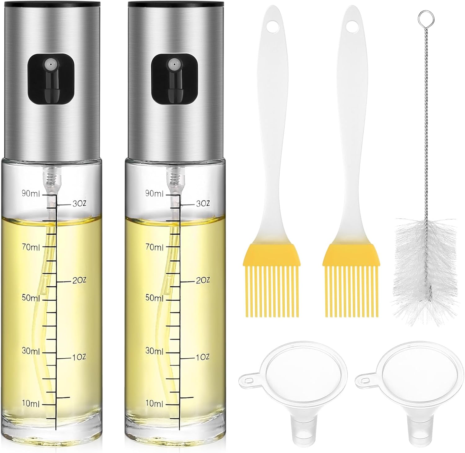 - Paket enthält: Sie erhalten 2 Stück 100 ml Ölsprüher, 2 Stück Kunststofftrichter, 1 x Reinigungsbürste, 2 Stück Ölbürsten, umfangreiches Zubehör zum Reinigen und Verteilen, erfüllt die Nutzungsanforderungen mehrerer Szenen und Bereiche