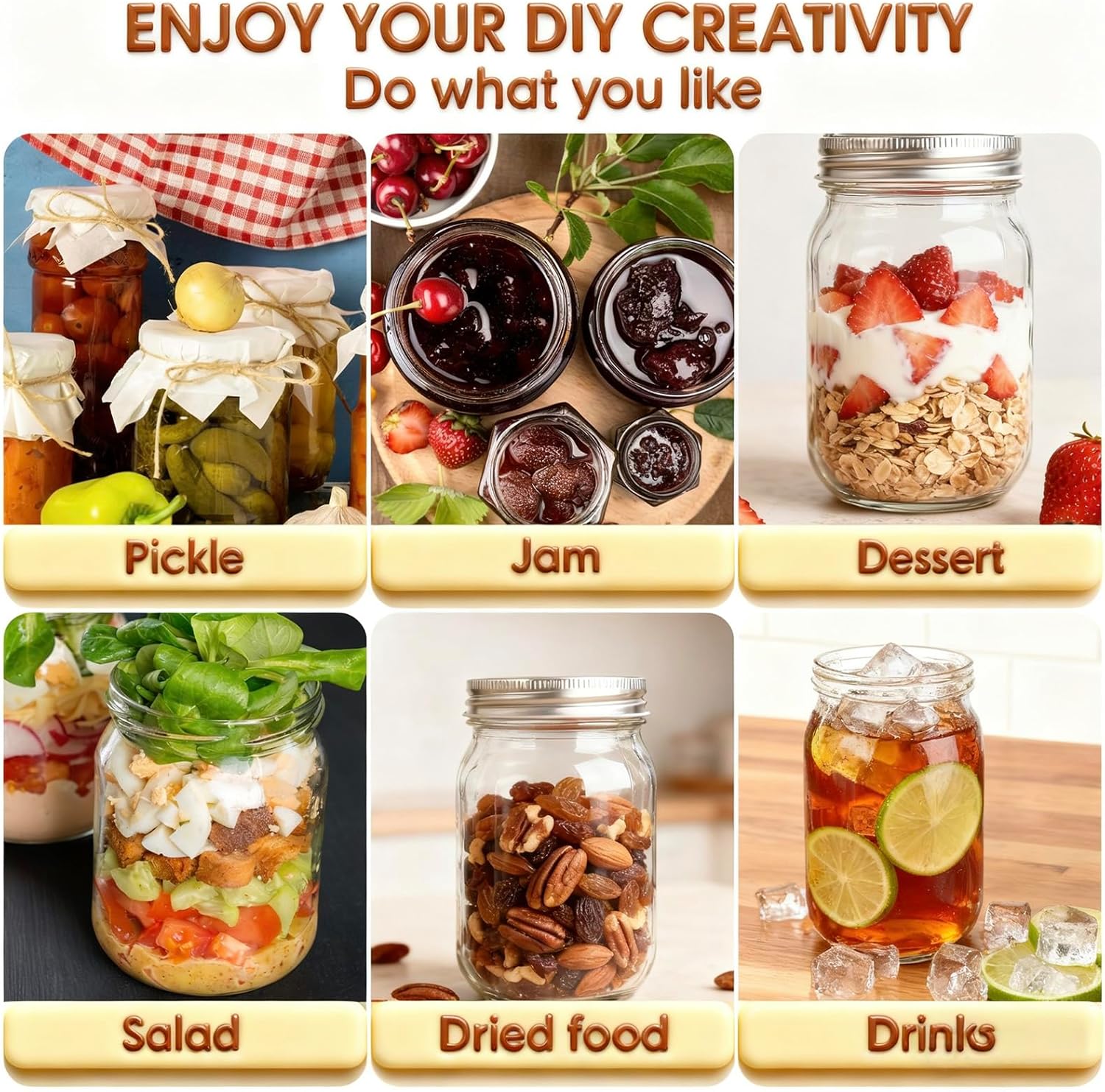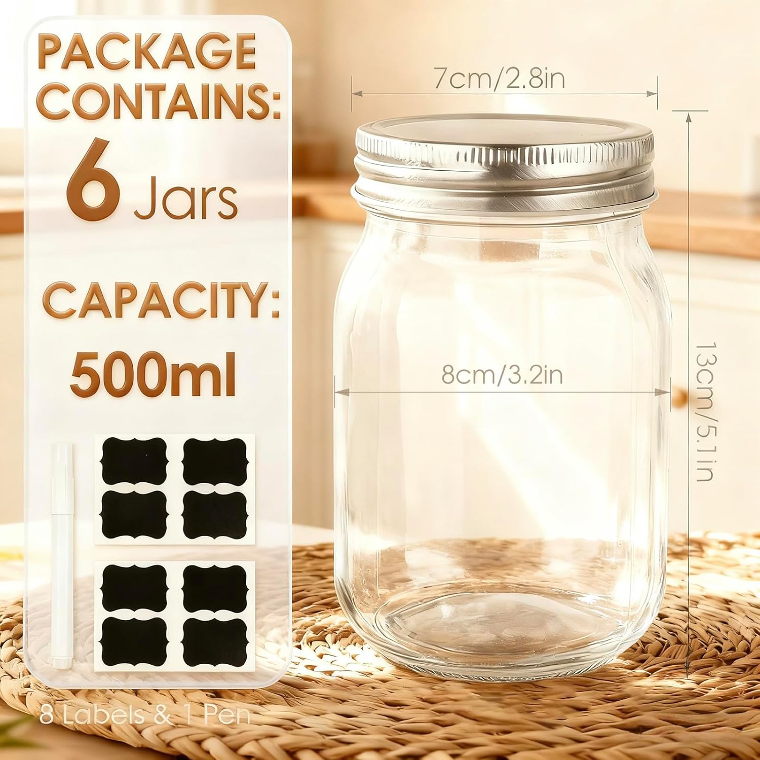6stk. Einmachgläser 500ml | Schraubgläser mit Deckel | Mason Jar Gläser mit Schraubdeckel | Overnight Oats Gläser | Mason Jars für Eingelegtes, Marmelade, Honig, Joghurt