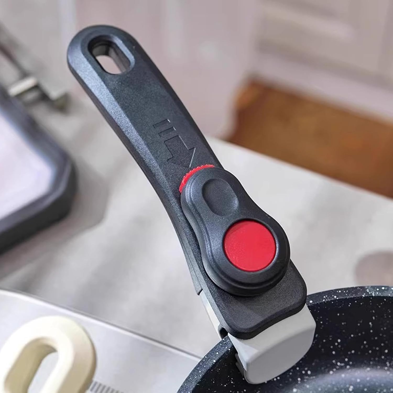 Der abnehmbare Griff ist wirklich praktisch und liegt gut in der Hand, er greift sicher und erleichtert das Heben von Töpfen und Pfannen erheblich. Die Verarbeitung wirkt stabil, er passt auf verschiedene Pfannen und lässt sich schnell anbringen, somit eine klare Empfehlung für jede Küche.