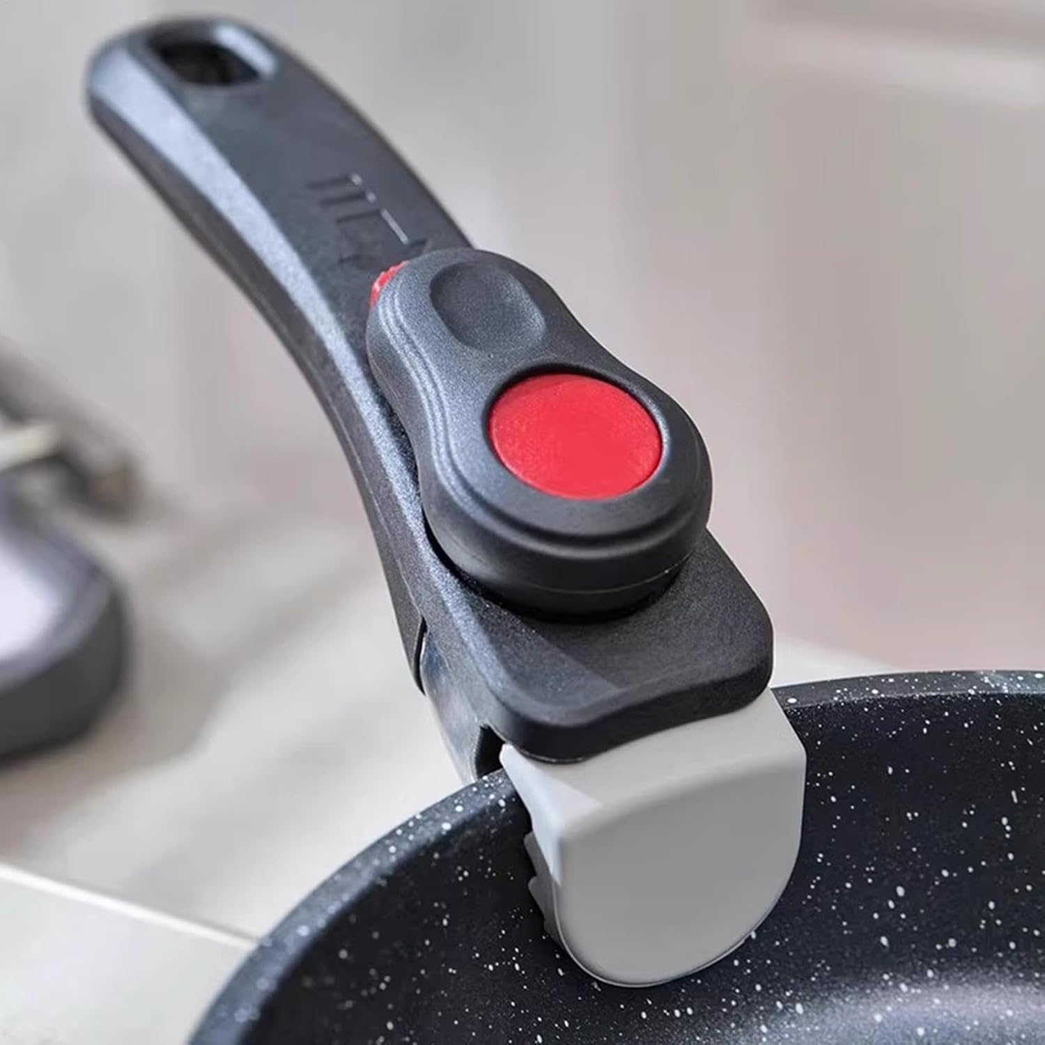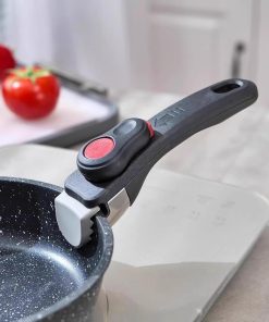 Der abnehmbare Griff sitzt fest, lässt sich unkompliziert anbringen und wieder entfernen und passt gut an verschiedene Töpfe und Pfannen. Die Verarbeitung wirkt robust, die Handhabung ist praktisch und erleichtert das Kochen sowie die Reinigung.