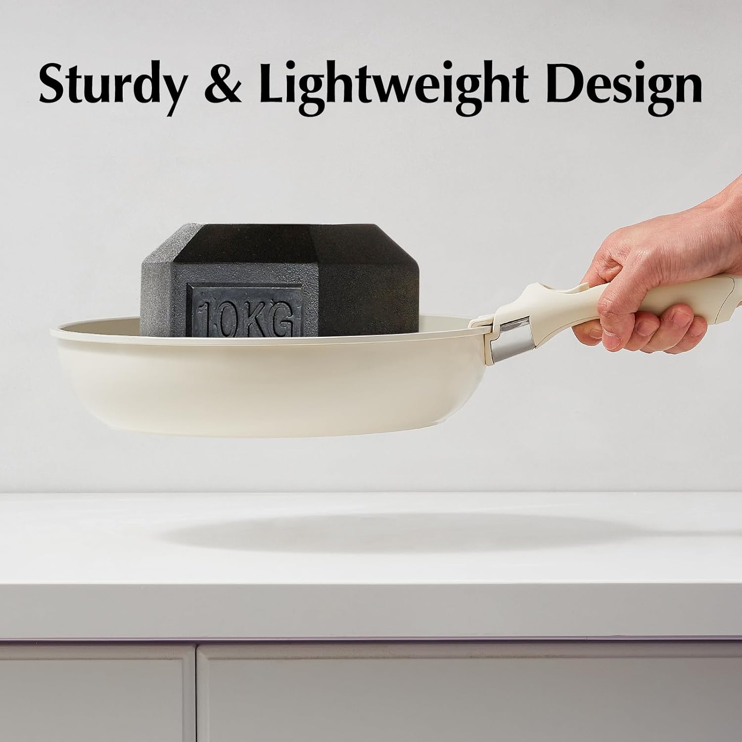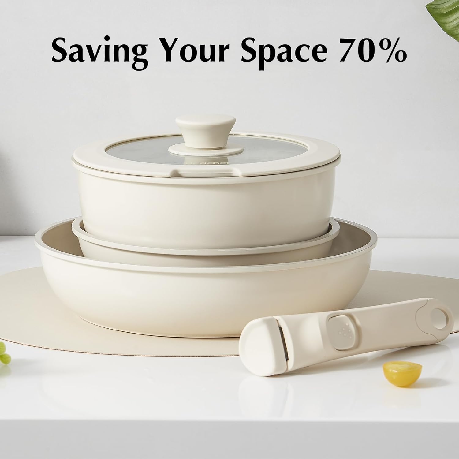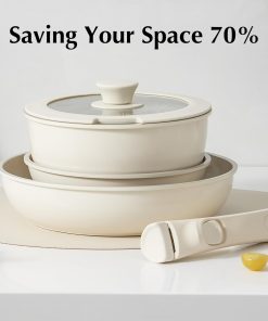Sehr praktisches Topfset: Die abnehmbaren Griffe lassen sich leicht anbringen und lösen, sodass die Töpfe platzsparend gestapelt werden können. Die Klemmung hält sicher und bietet guten Schutz vor Verbrühungen, das weiße Design wirkt sauber und passt gut in die Küche. Insgesamt bin ich sehr zufrieden mit Handhabung und Qualität.