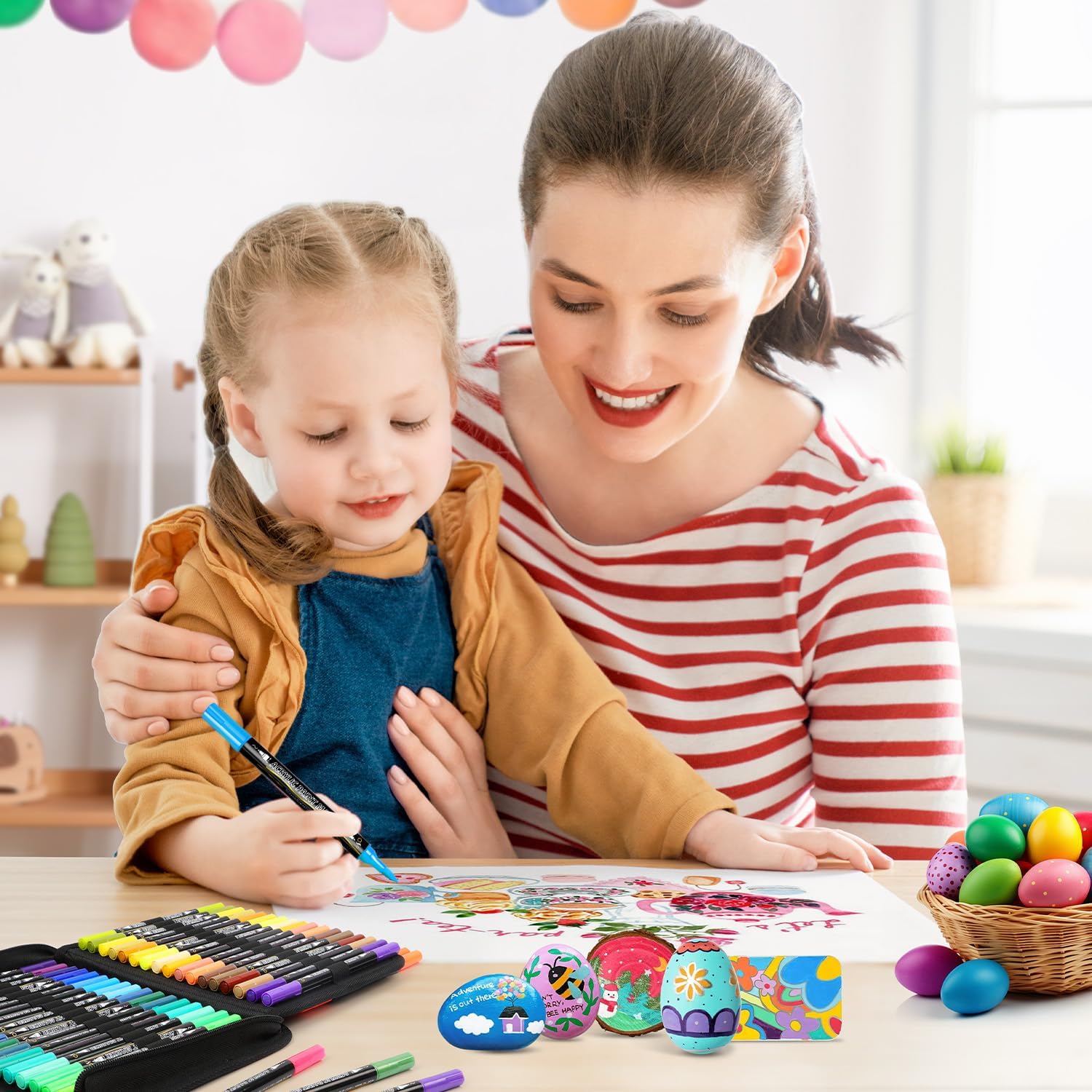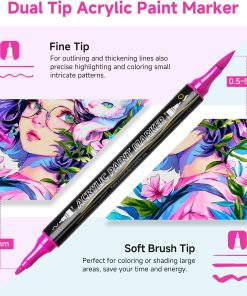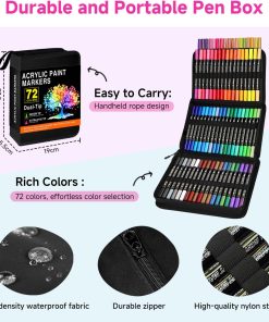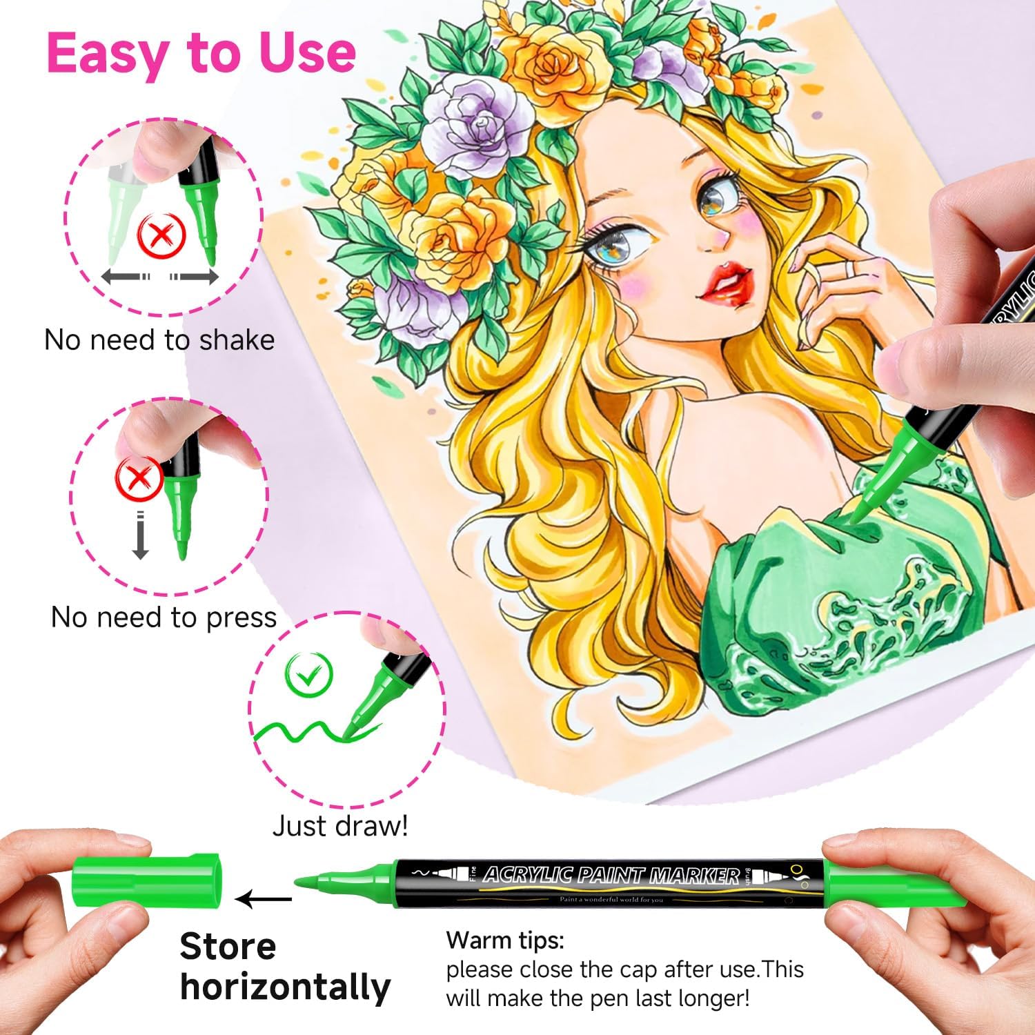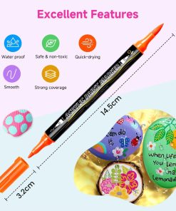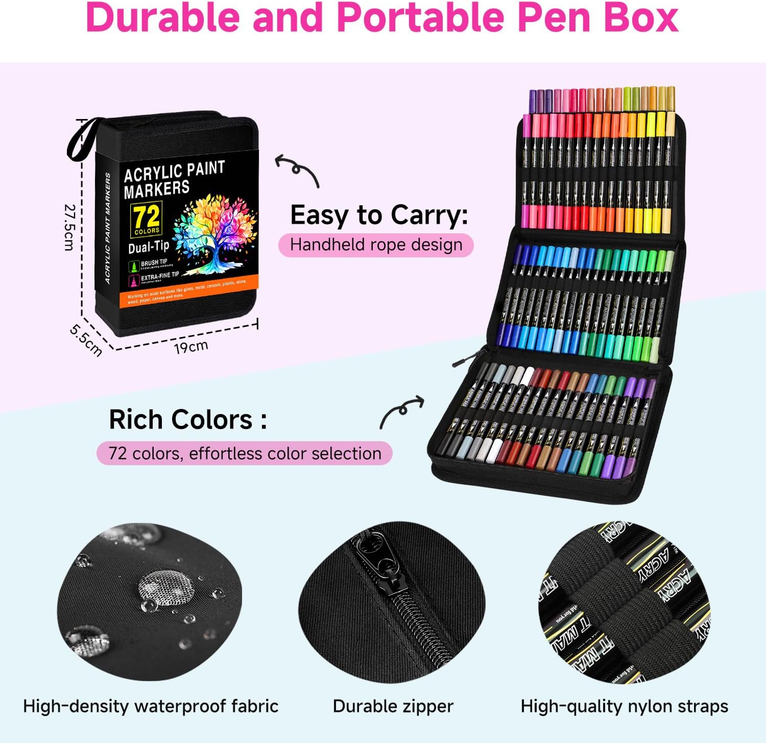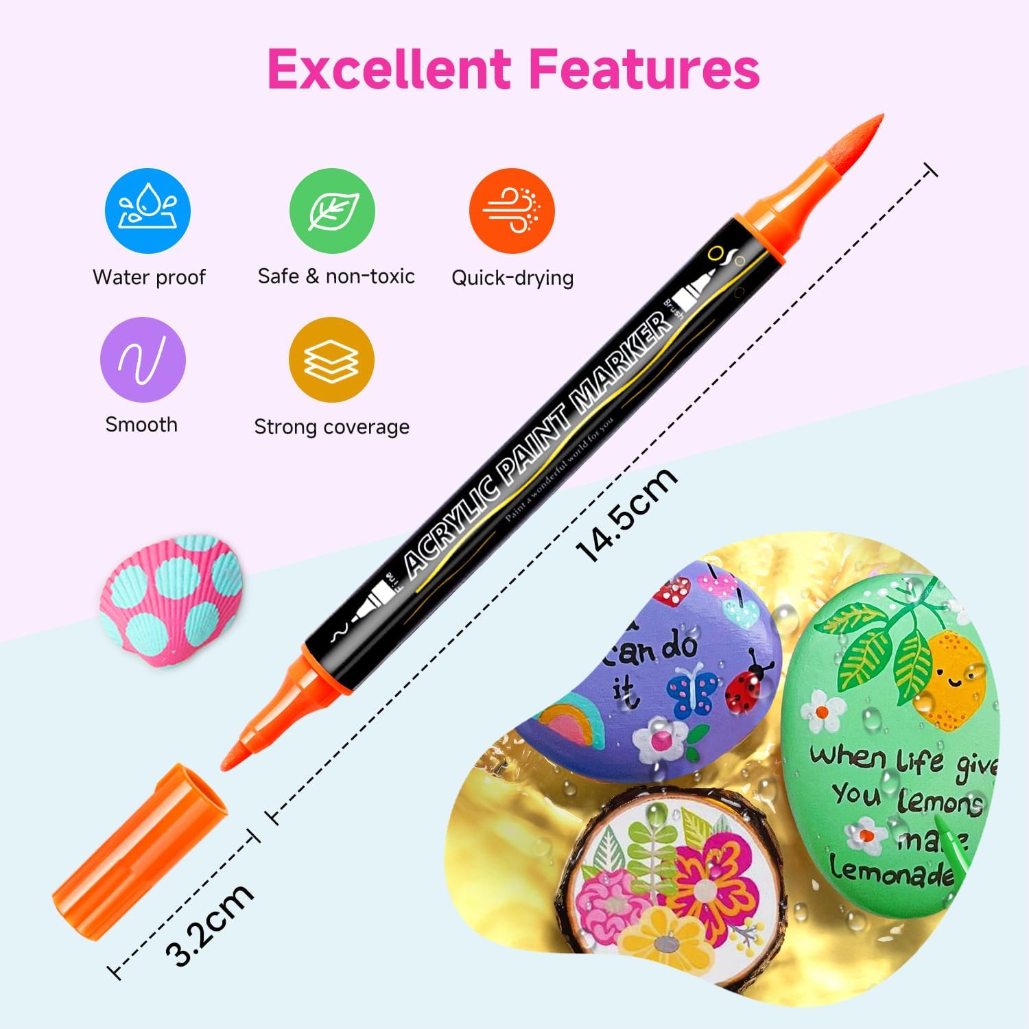 Acrylstifte Set 72 Farben, Dual Tip Acrylic Paint Marker mit Feiner Spitze und Pinsel, Acrylmarker Wasserfest für Steine Holz Ostereier Glas Keramik Leinwand und Papier, Acrylfarben Stifte Kinder