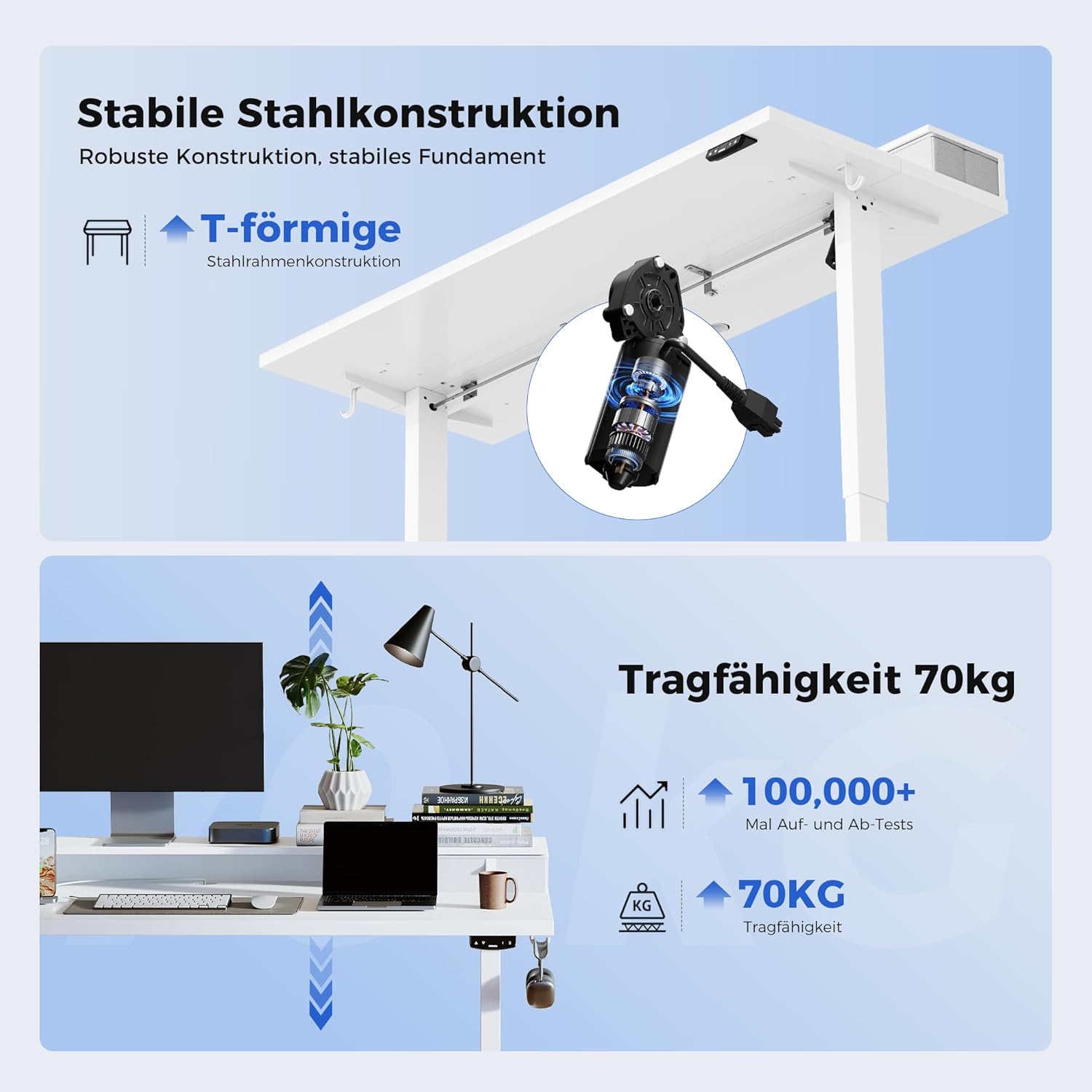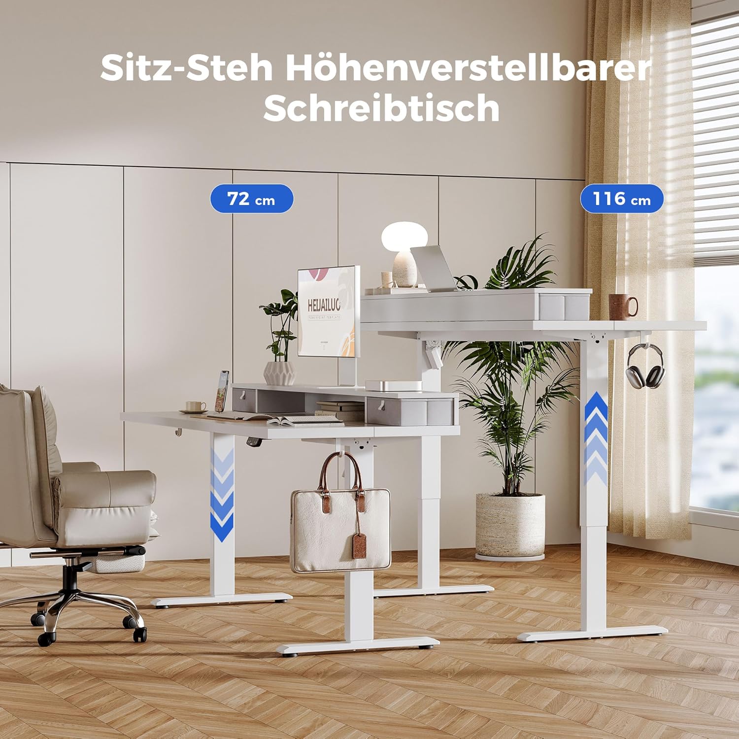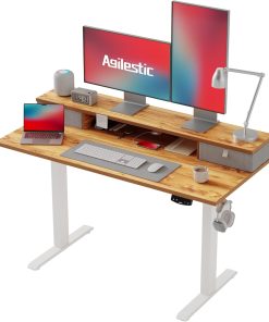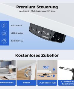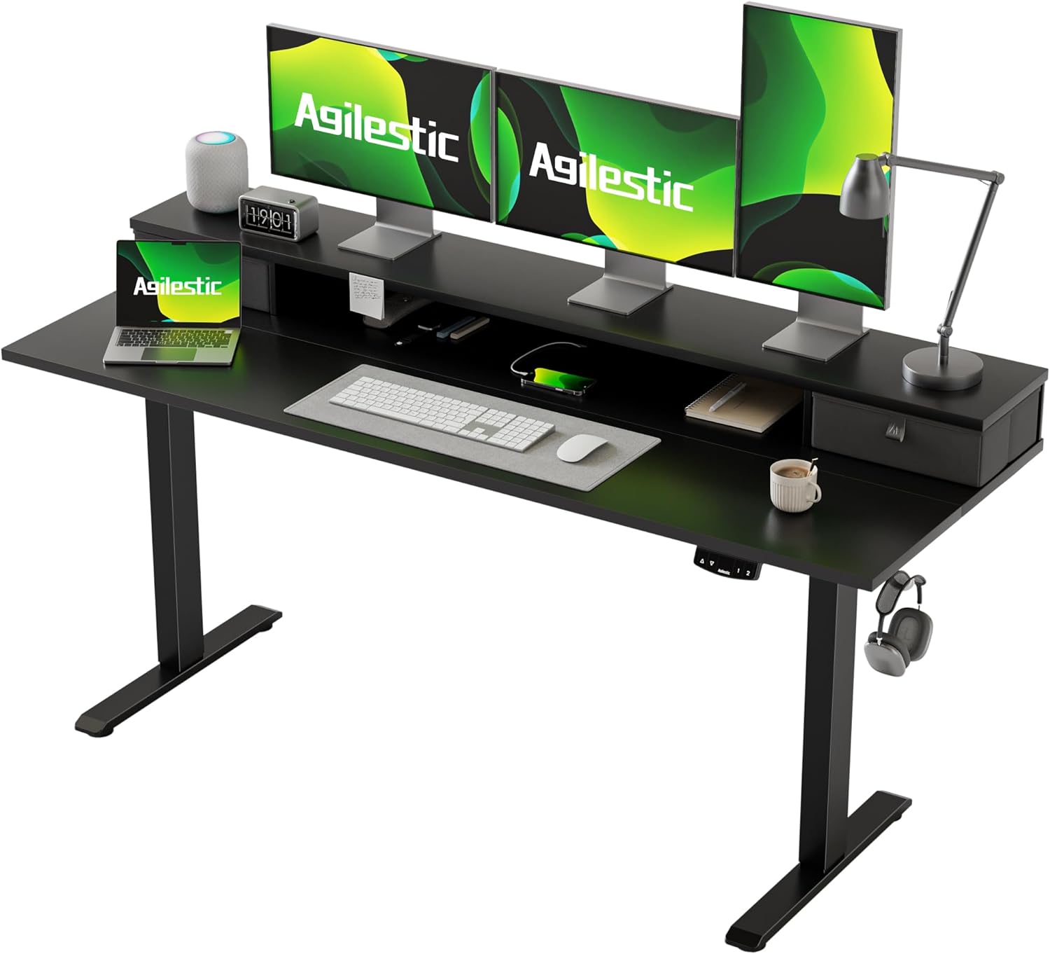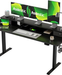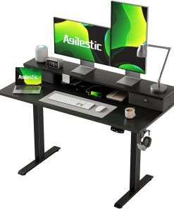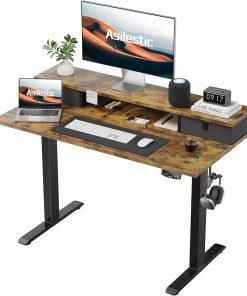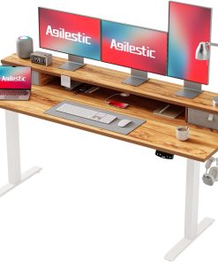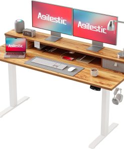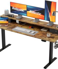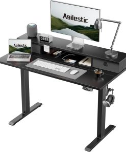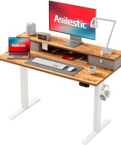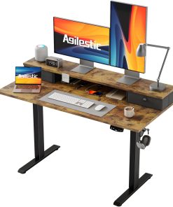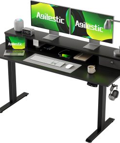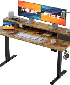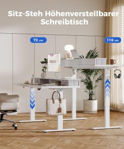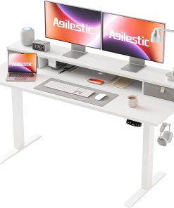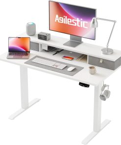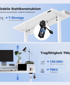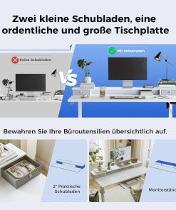 Agilestic Höhenverstellbarer Schreibtisch mit 2 Schubladen, 160 x 60 cm Stabiler Schreibtisch Höhenverstellbar Elektrisch, Ergonomischer Steh-Sitz Tisch Computertisch, Weiß