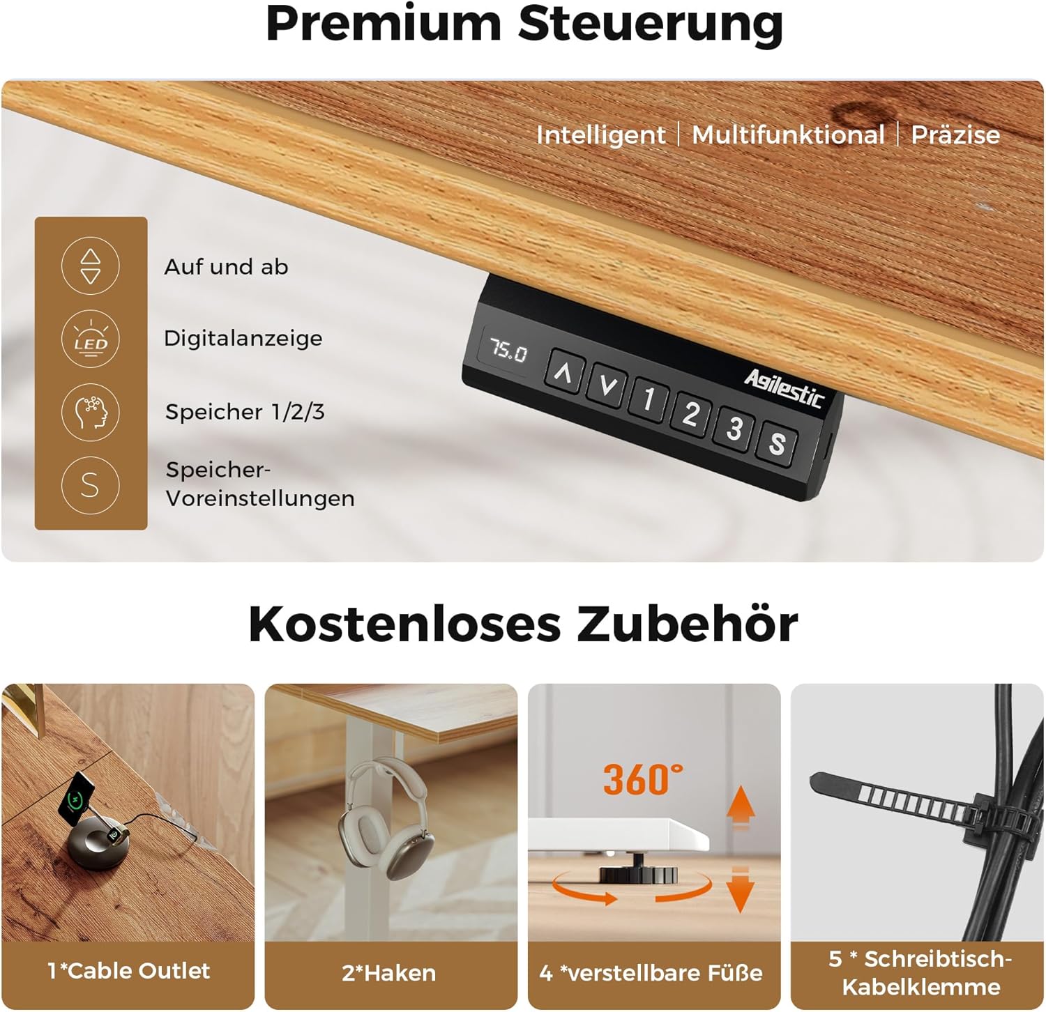 - 【Höhenverstellbar】 Der Agilestic Stehschreibtisch ist mit einem fortschrittlichen Motor ausgestattet, der eine leise Höheneinstellung (weniger als 55 dB im Betrieb) im Bereich von 71 cm bis 116 cm ermöglicht. Die Höhe kann an die individuellen Bedürfnisse des Benutzers angepasst und mit 3 Speichertasten gespeichert werden.