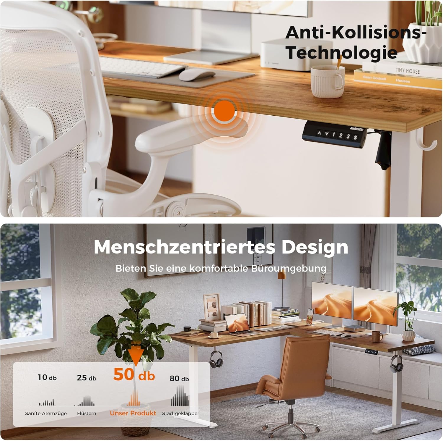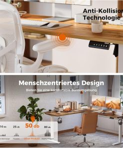 - 【Antikollisionstechnologie】 Wenn der höhenverstellbare Schreibtisch während des Aufstiegs auf ein Hindernis trifft, zieht er sich automatisch um 2 cm zurück, um Schäden oder Verletzungen zu vermeiden.