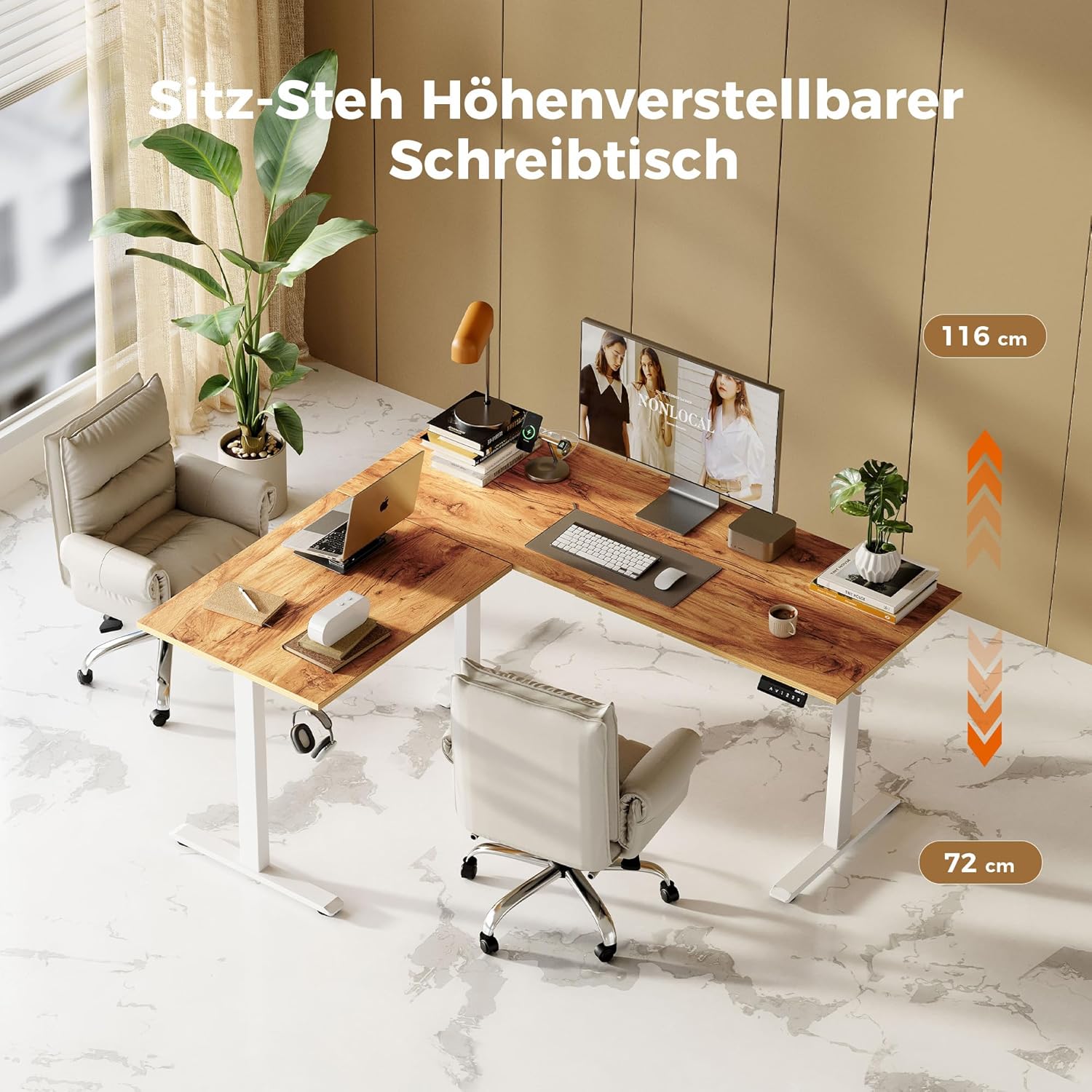 - 【L-förmiges Design】 Der extra große L-förmige Schreibtisch bietet einen großen Arbeitsbereich und kann flexibel an jede Ecke des Hauses angepasst werden. Die Tischplatte besteht aus Materialien mit niedrigem Gehalt an flüchtigen organischen Verbindungen (VOC) und entspricht den nationalen Luftqualitätsstandards.
