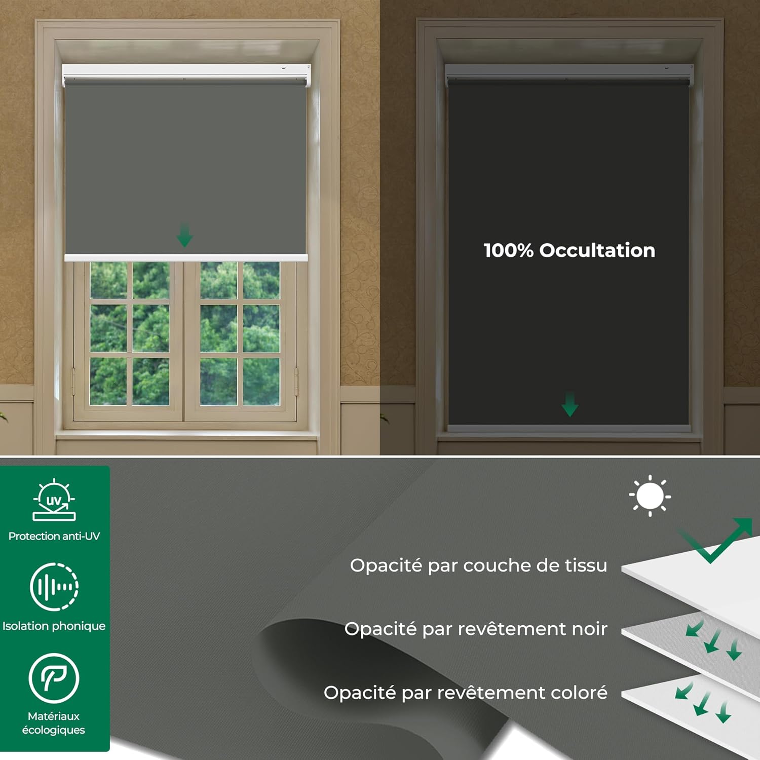 - Funktionelles E-Rollo: 100% Verdunkelung, Der Stoff besteht aus 100% Polyester mit Beschichtung auf der Rückseite. Elektriche Verdunklungsrollo Privatsphäre Schützen. Das Elektrisches Rollos Innen besonders gut für Küche, Bad, Arbeits, Schlafzimmer usw