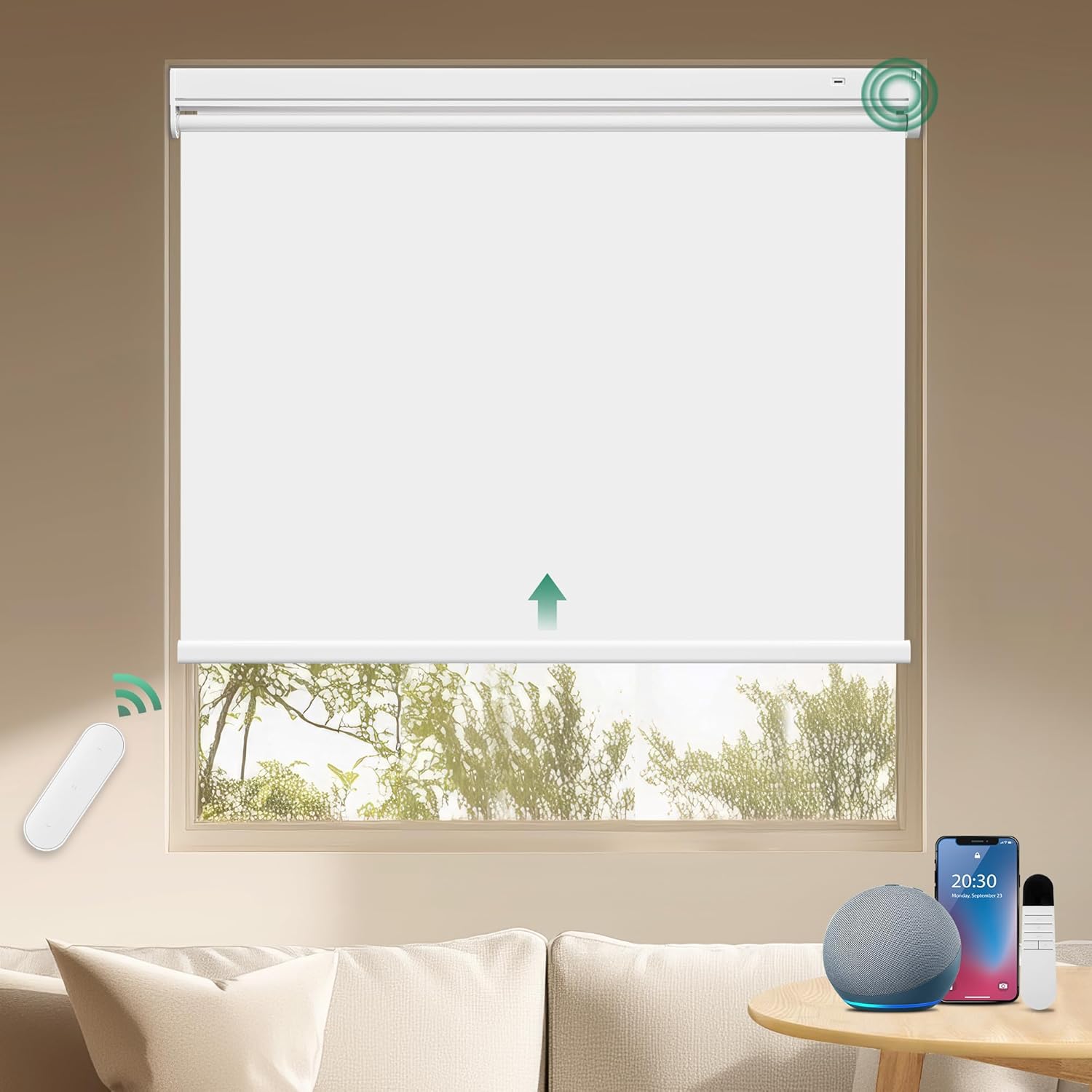 - Maximaler Komfort: Die Fernbedienung und das Verdunklungsrollo wurden werkseitig erfolgreich codiert und das Rollo kann nach Empfang sofort verwendet werden; Wiederaufladbare Leiser Motor Alexa&Google Assistant kompatibel, Per Handy steuerbar
