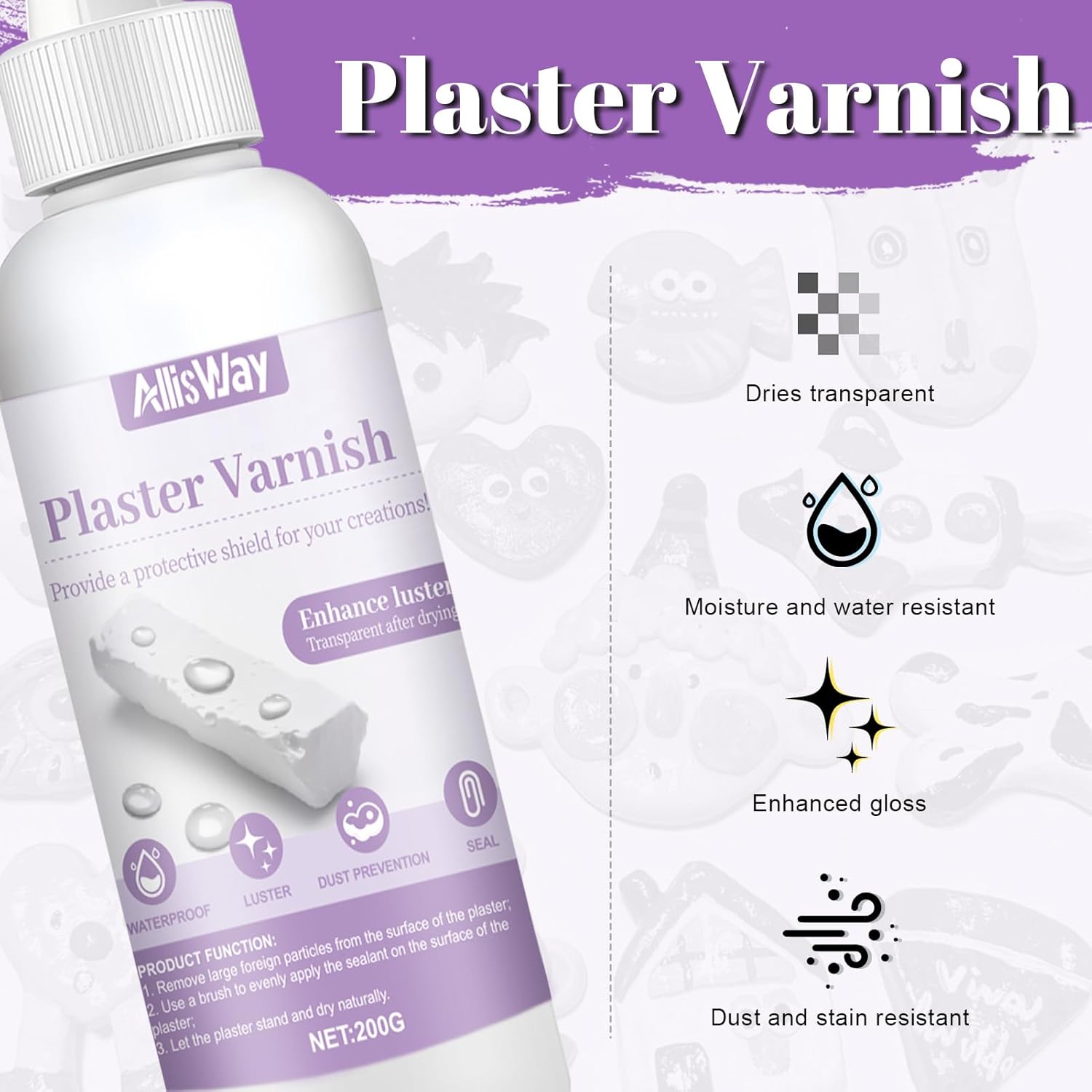 - Transparent und Glänzend: AllisWay Gips Versiegelung Wasserfest bildet nach dem Trocknen einen transparenten und glänzenden Schutzfilm, der die ursprüngliche Farbe und Textur des Modells perfekt bewahrt und der Oberfläche gleichzeitig einen eleganten Glanz verleiht