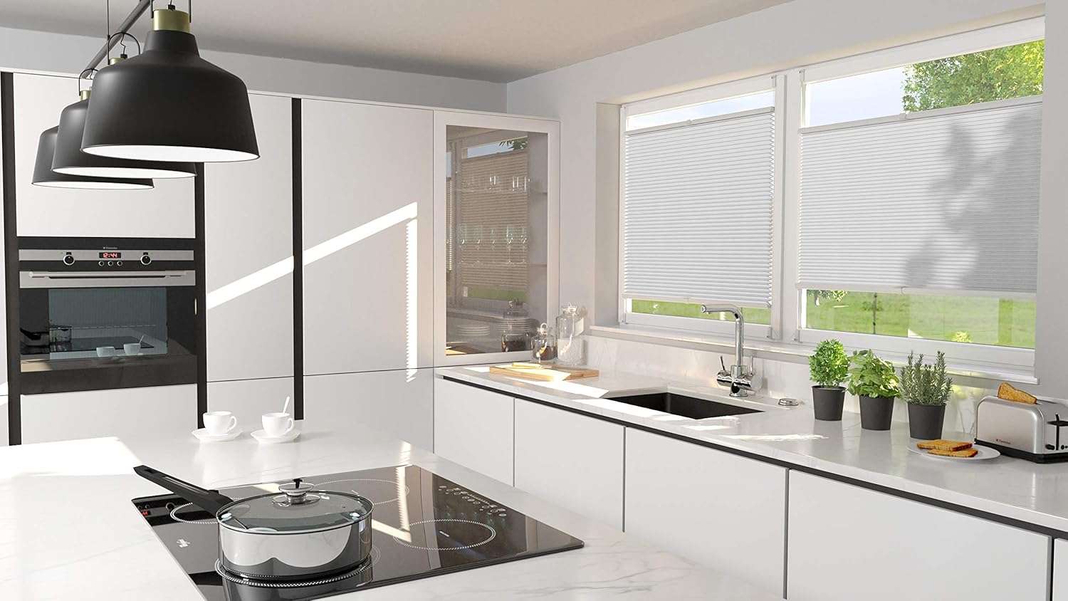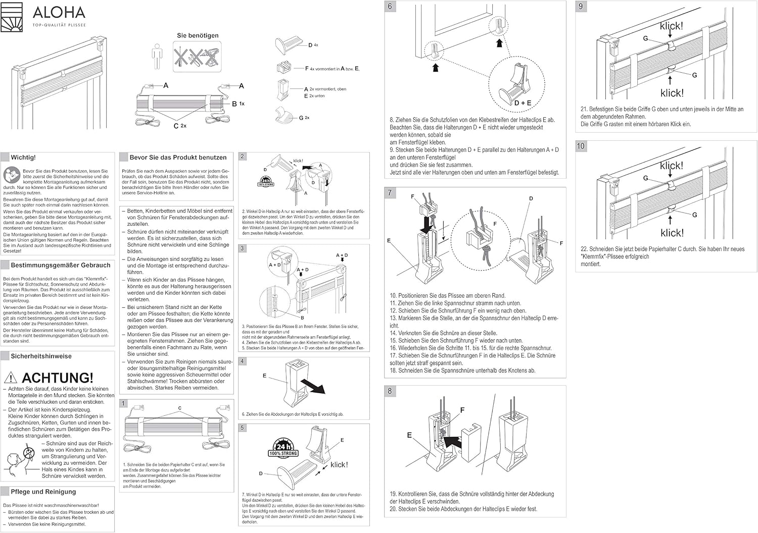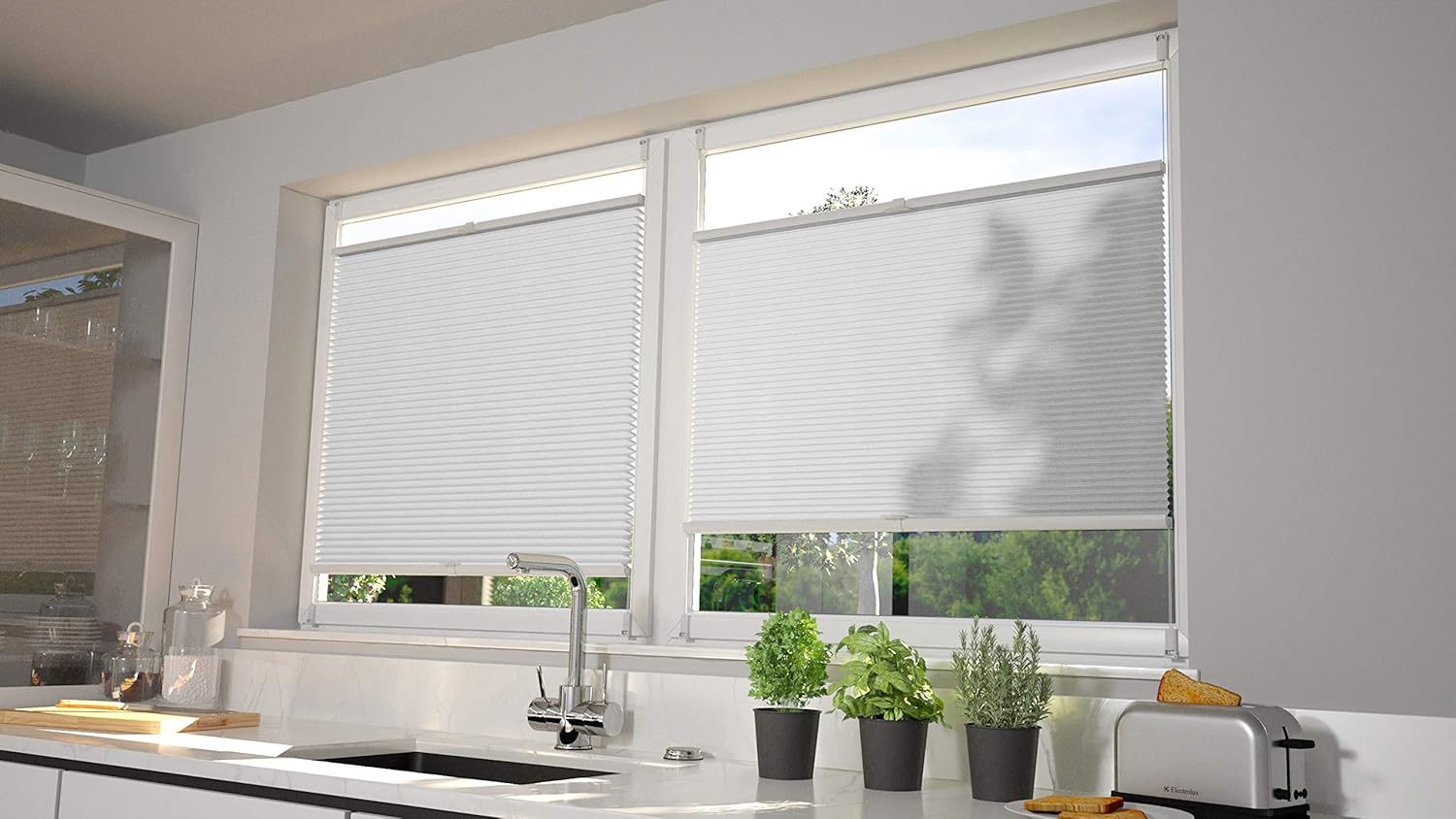 ALOHA Plissee ohne Bohren Klemmfix Faltrollo Plisseerollo Blickdicht Sonnenschutz Jalousie für Fenster & Tür (Weiß / 35x100cm / Breite x Höhe)