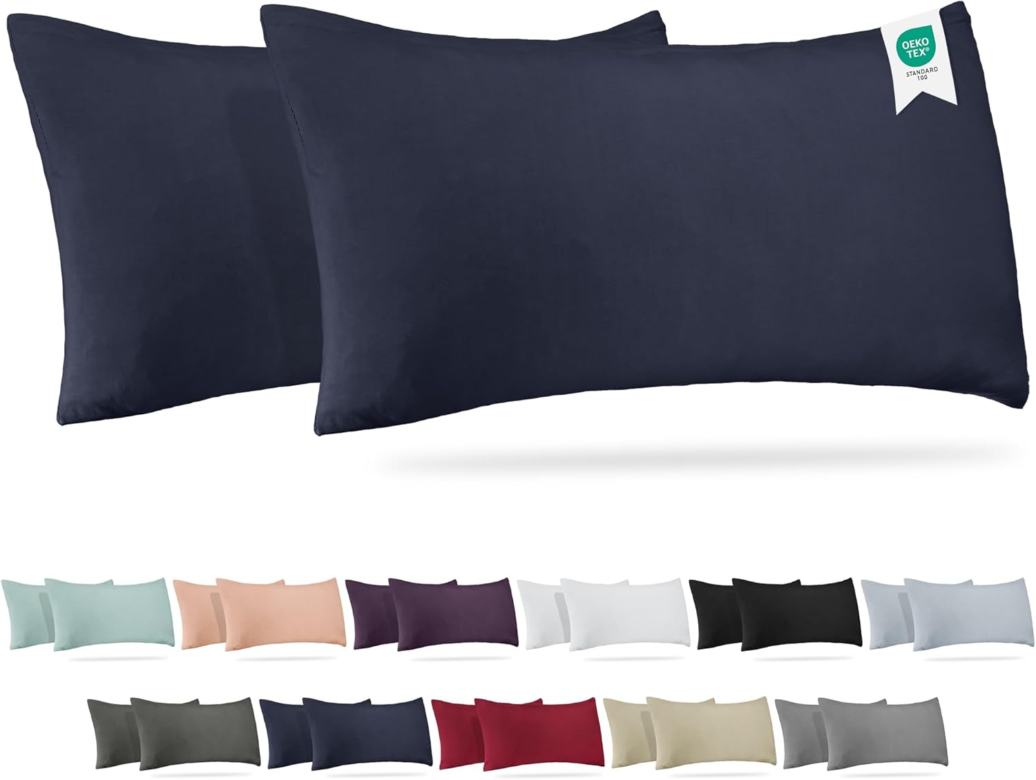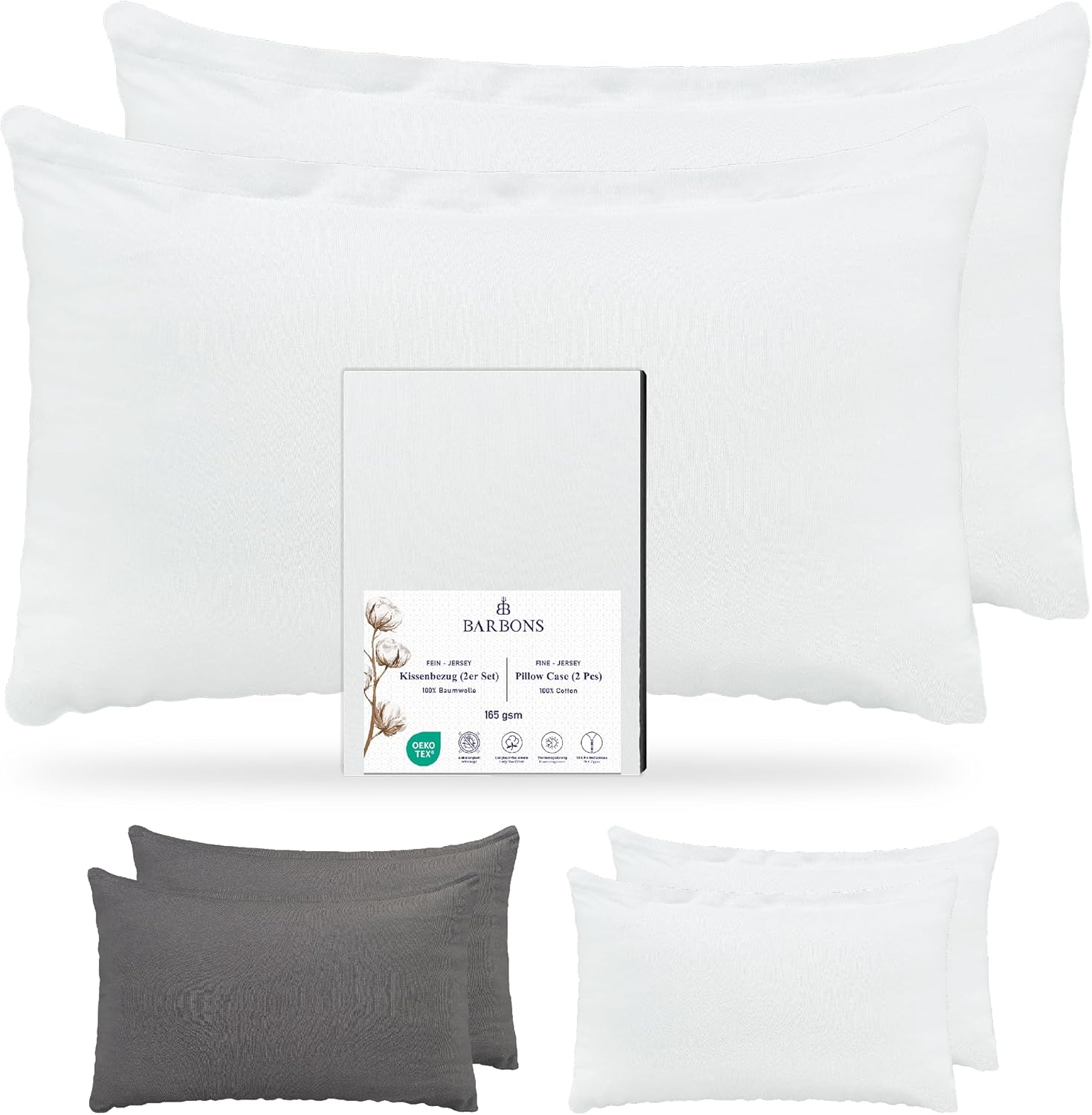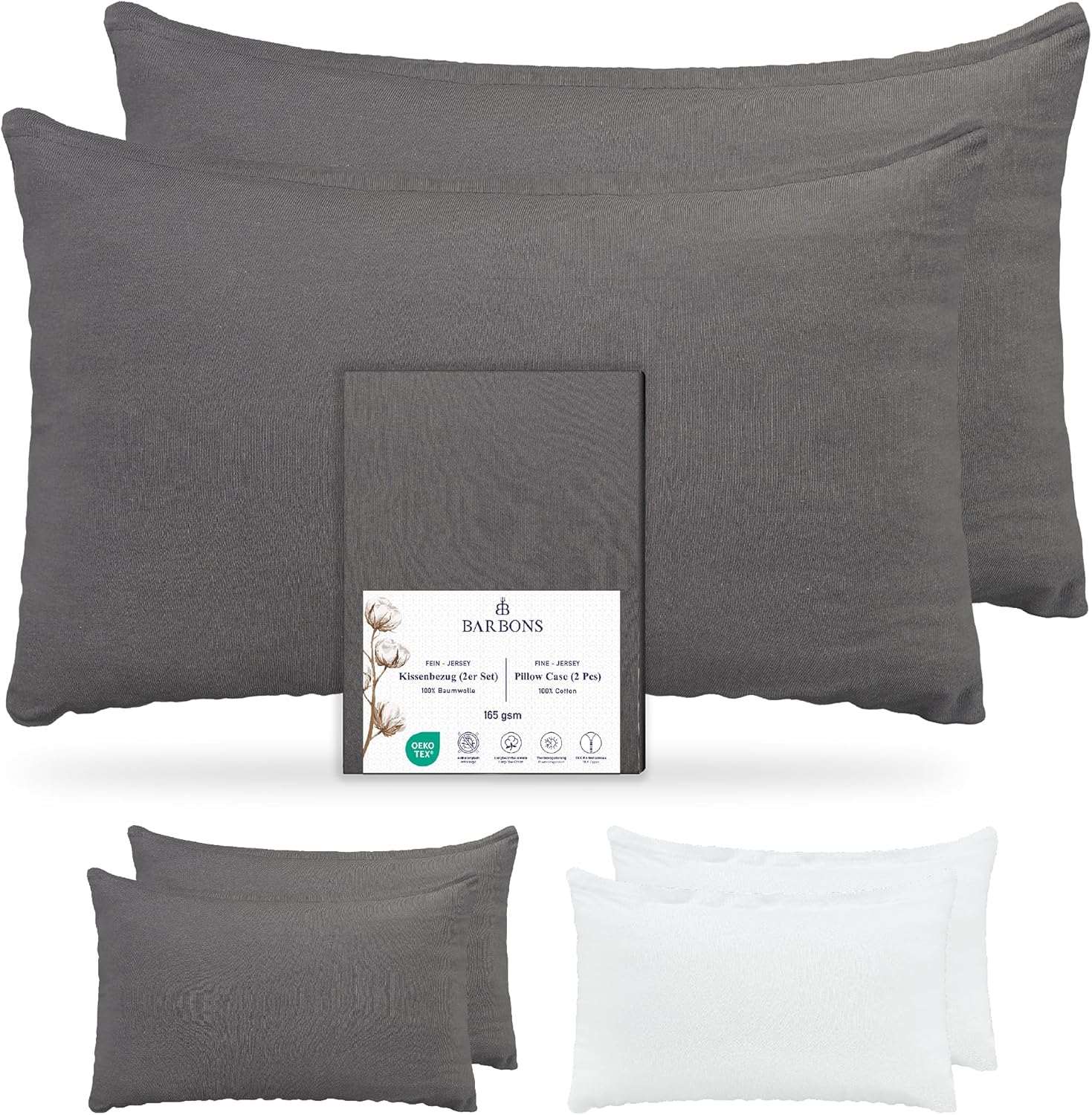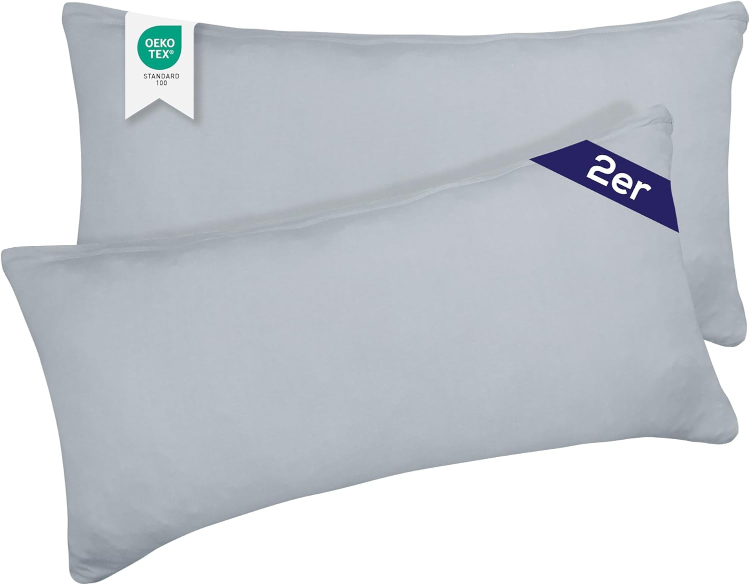 Barbons Kissenbezug 40 x 80 2er Set – 165 g/m² Oeko-TEX Zertifiziert Kopfkissenbezug 100% Jersey Baumwolle weiche Kissenbezüge Kissenhülle mit Reißverschluss (40×80-Blau)