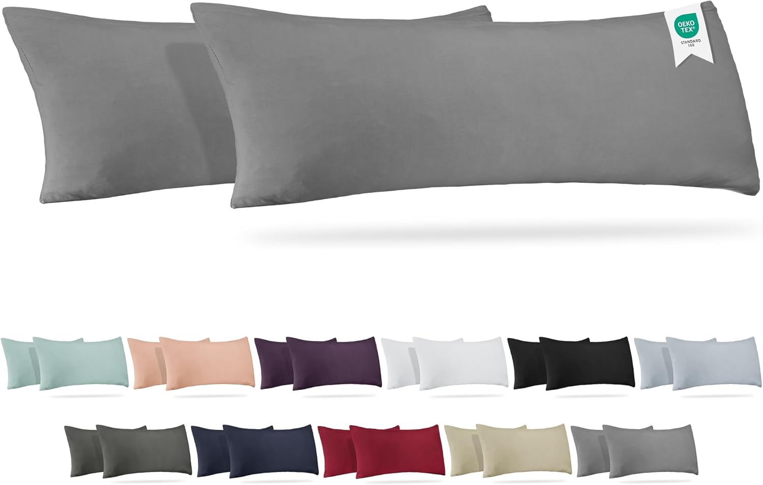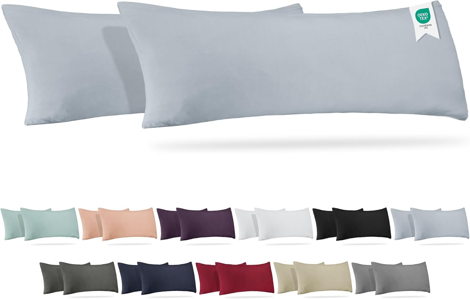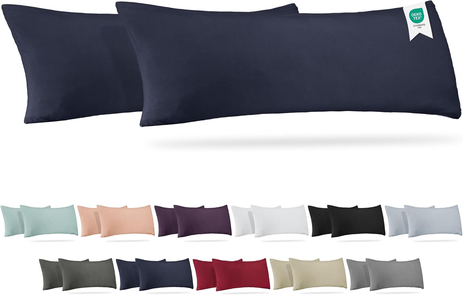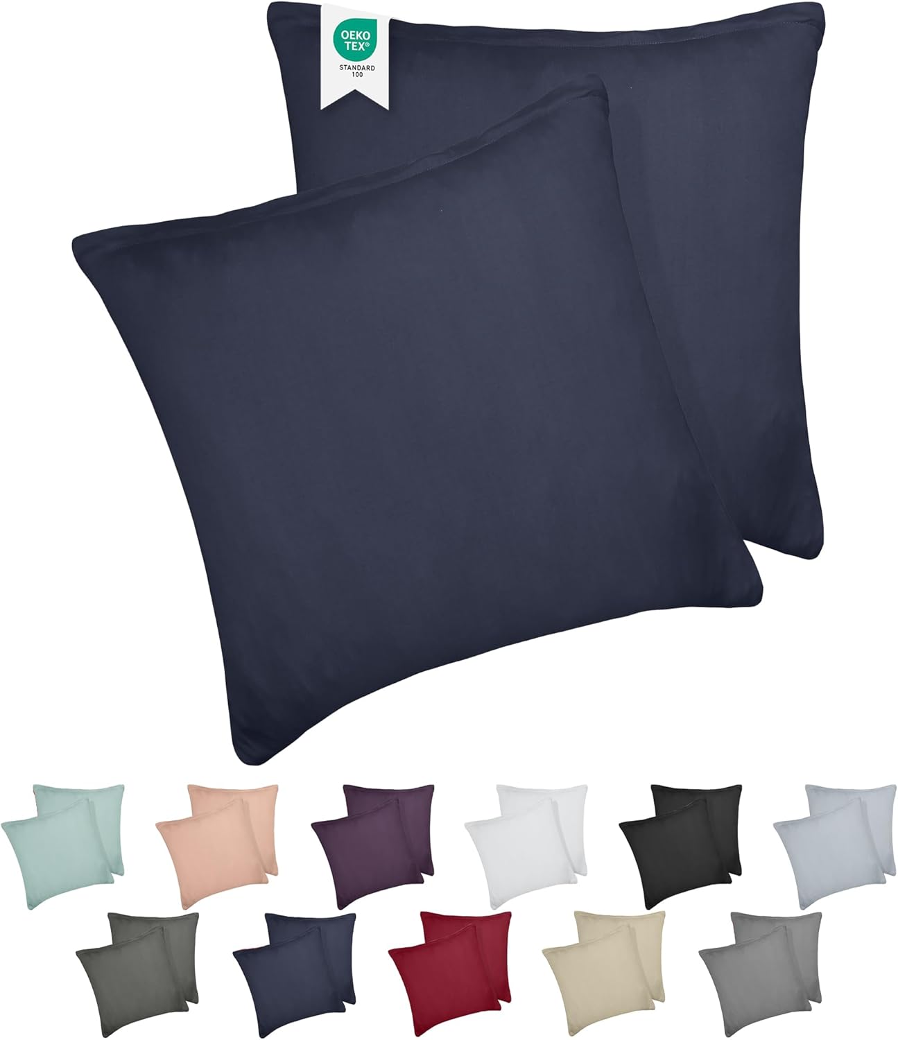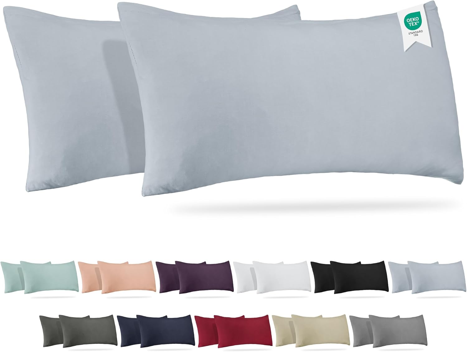 Barbons Kissenbezug 40 x 80 2er Set – 165 g/m² Oeko-TEX Zertifiziert Kopfkissenbezug 100% Jersey Baumwolle weiche Kissenbezüge Kissenhülle mit Reißverschluss (40×80-Blau)