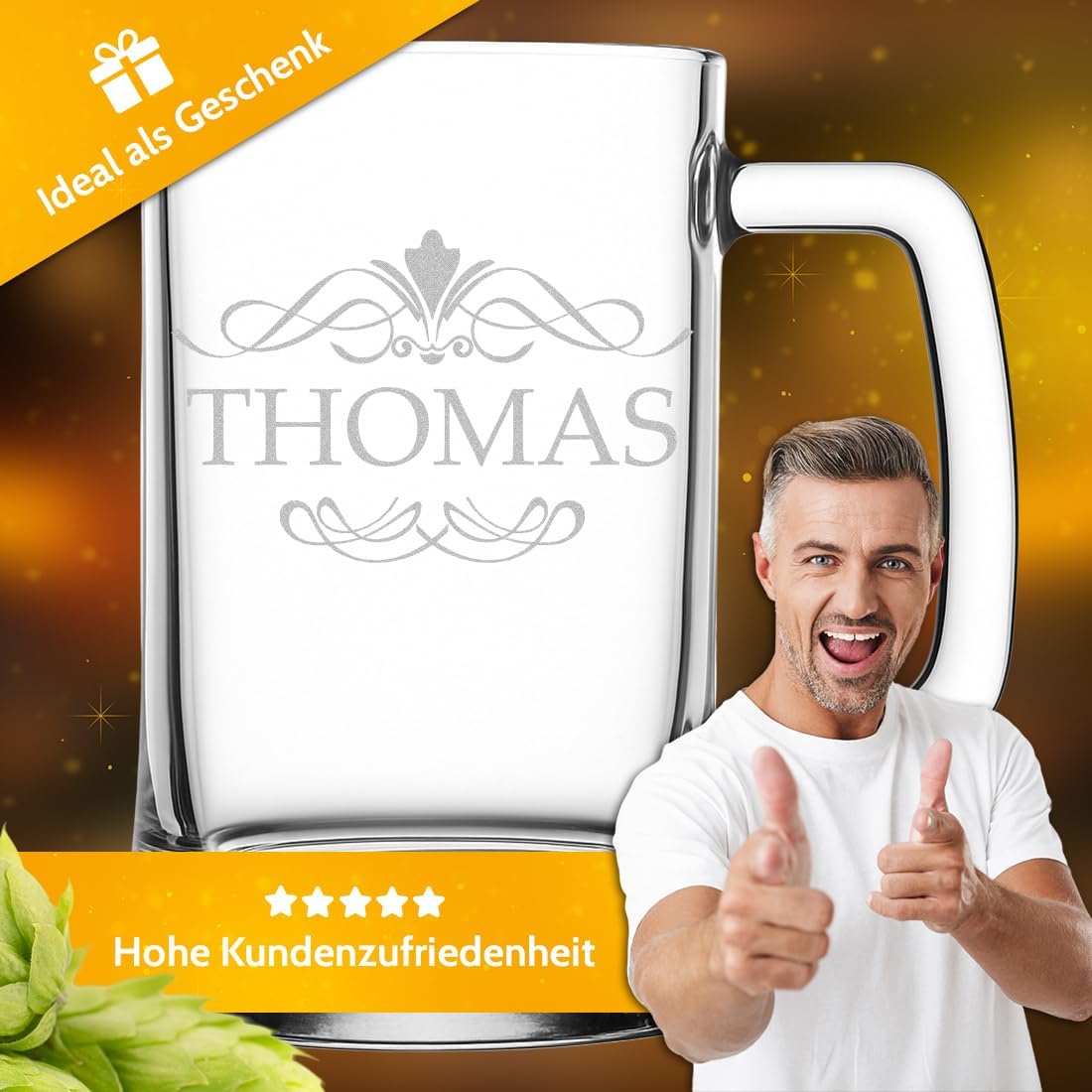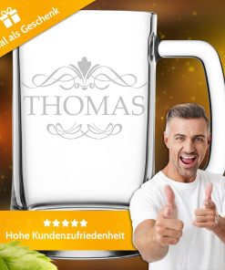 - Mit Lasergravur: Unser Bierkrug kann mit einer individuellen Gravur veredelt werden. In unserem großen Sortiment findest Du Motive zu den verschiedensten Anlässen
