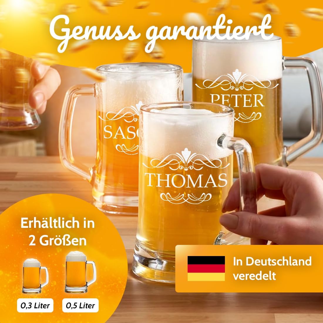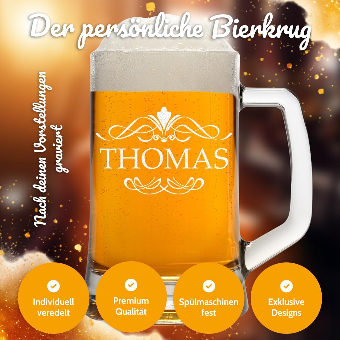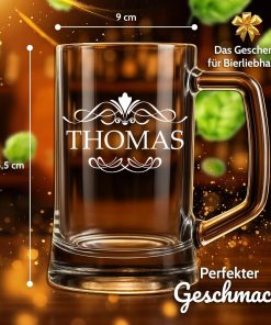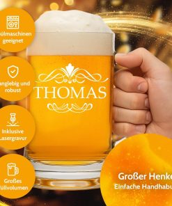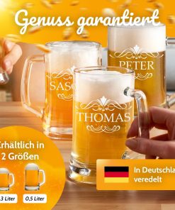 - Bierkrug mit Gravur: Erlebe unseren Bierkrug in 2 verschiedenen Größen (0,3 Liter und 0,5 Liter) veredelt mit einer personalisierten Gravur. Besonders robust, stoßfest und spülmaschinengeeignet