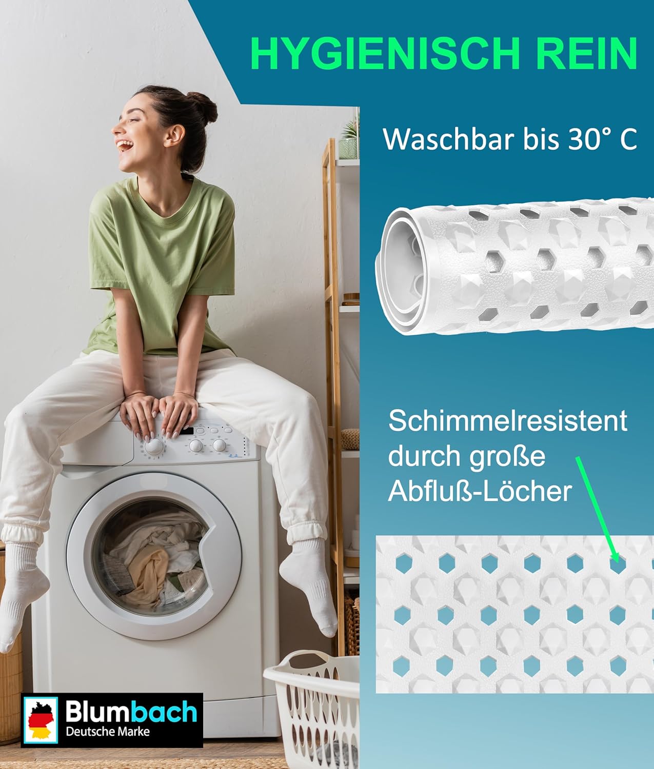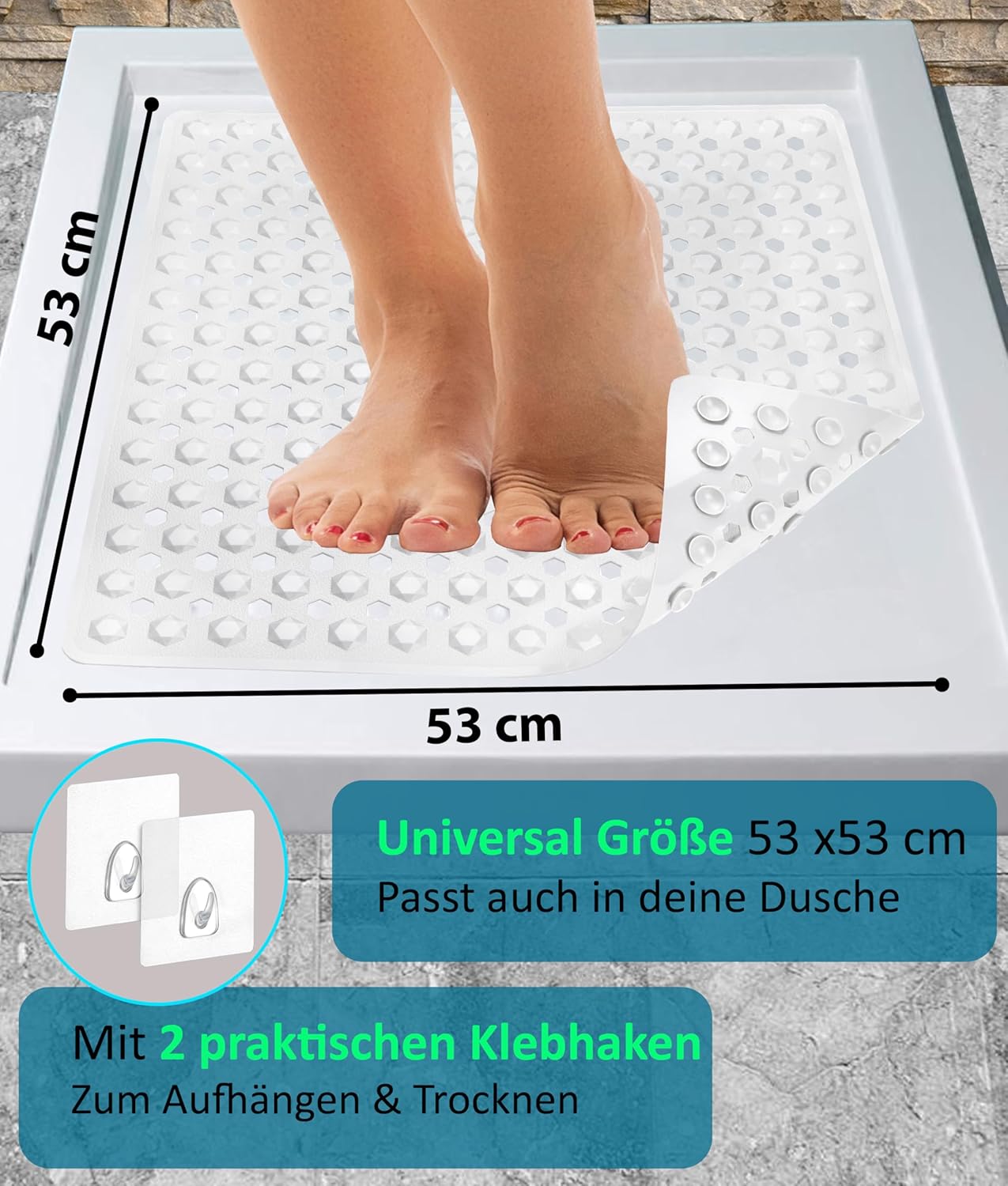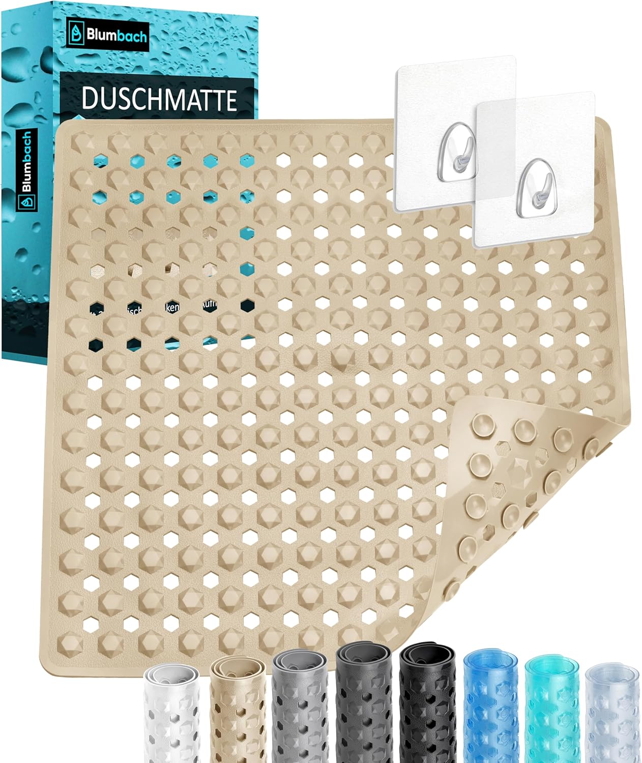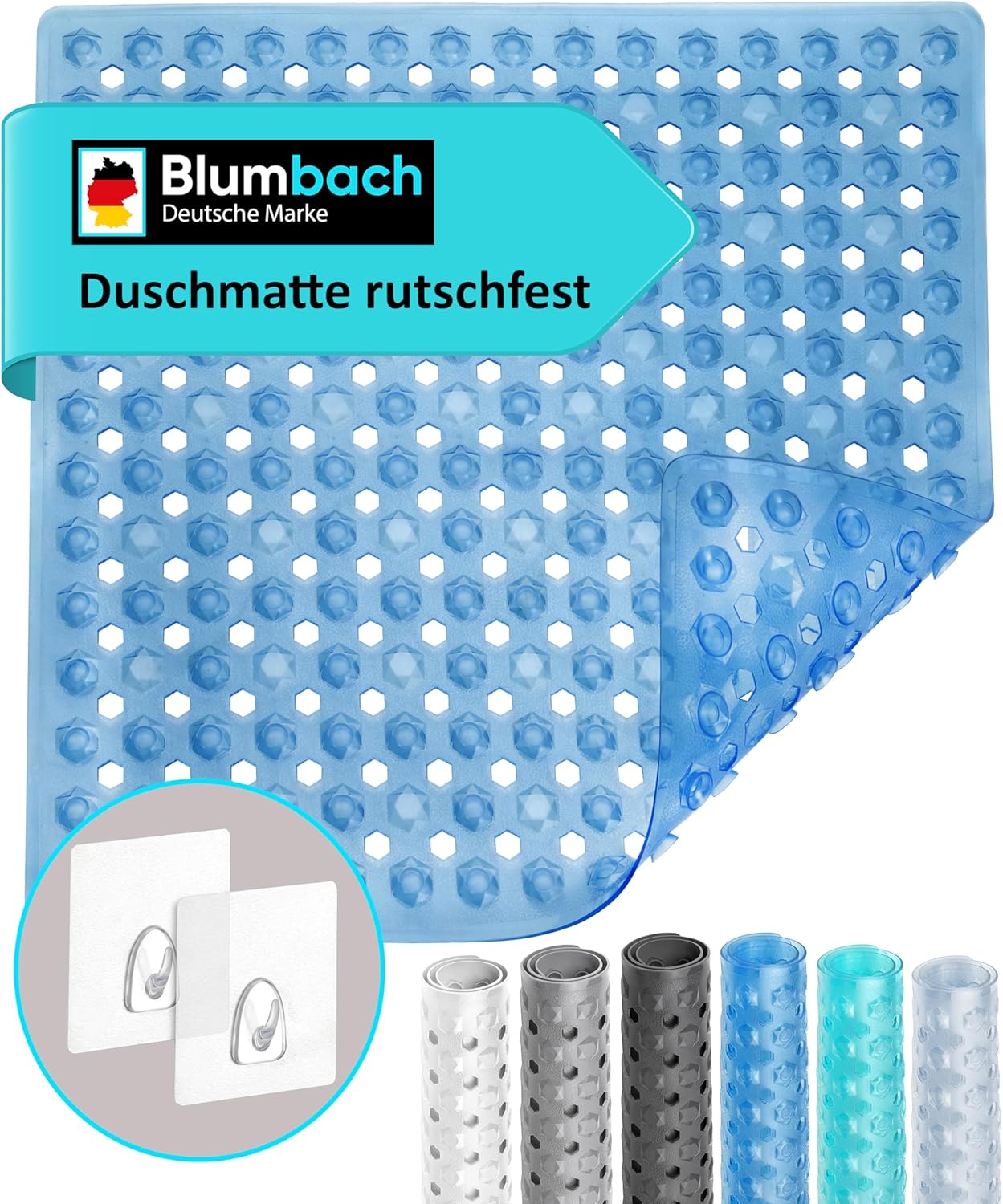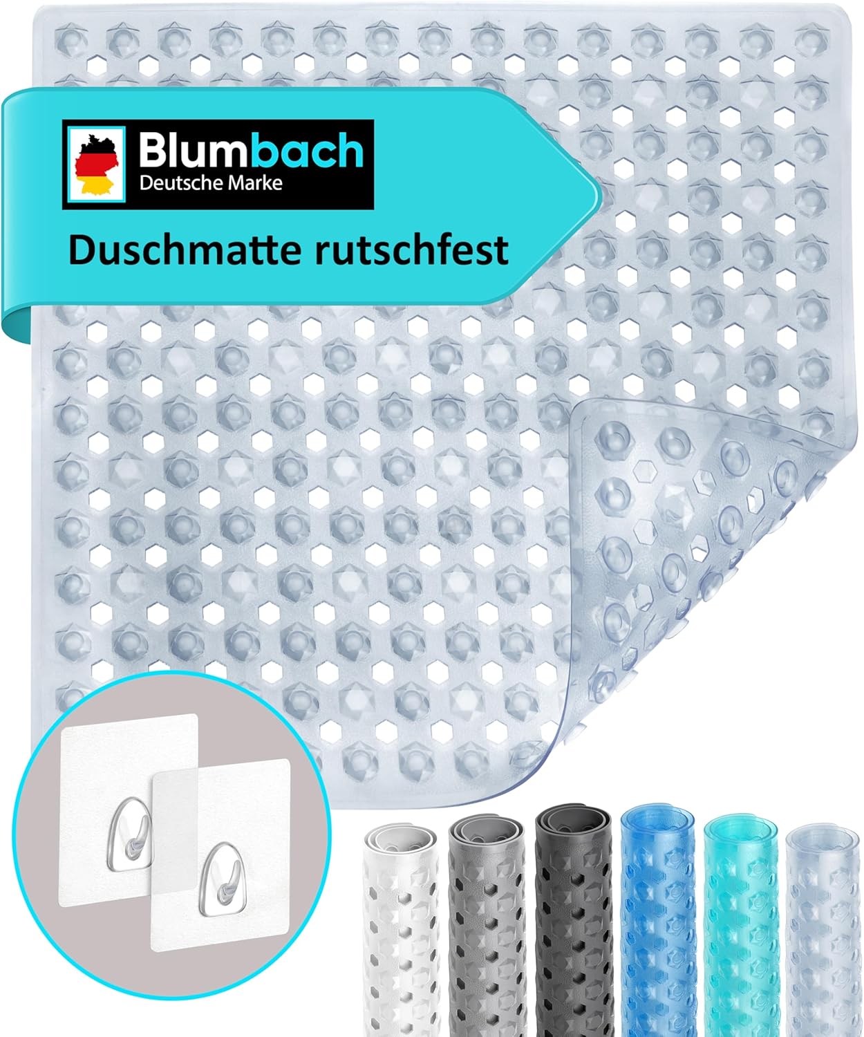 Blumbach® Duschmatte rutschfest 53x53cm – 100% BPA-frei – Inkl. 2 Haken zum Aufhängen – griffige Antirutschmatte Dusche & Badewanne, Duscheinlage, Rutschmatte schimmelresistent & maschinenwaschbar