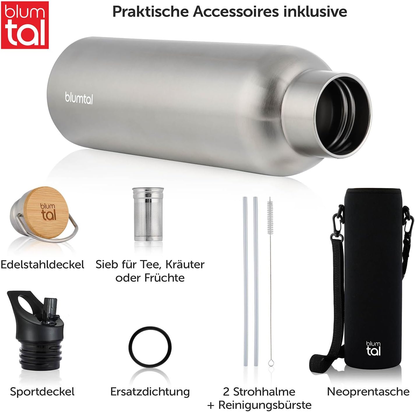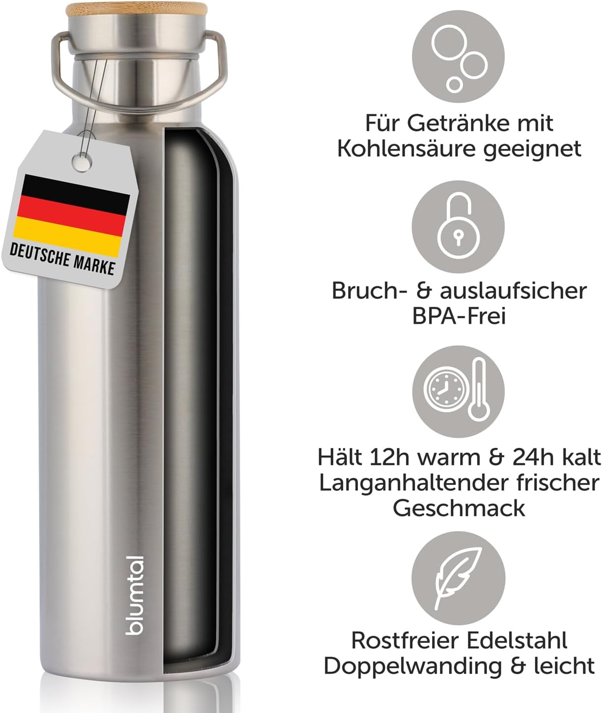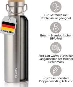 Blumtal Thermosflasche 750ml – doppelwandige Trinkflasche Edelstahl 750ml – Isolierflasche 750ml BPA frei – Edelstahl Trinkflasche – Teeflasche – Trinkflasche Thermo – Sportflasche – Stainless Steel