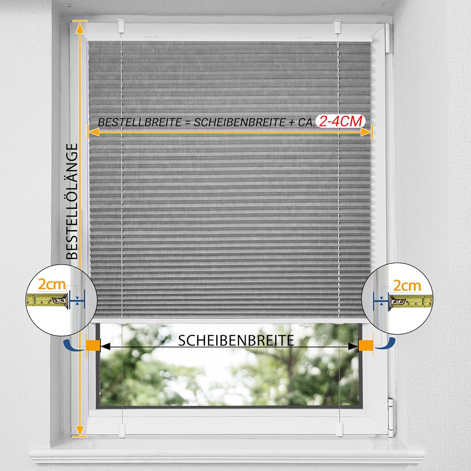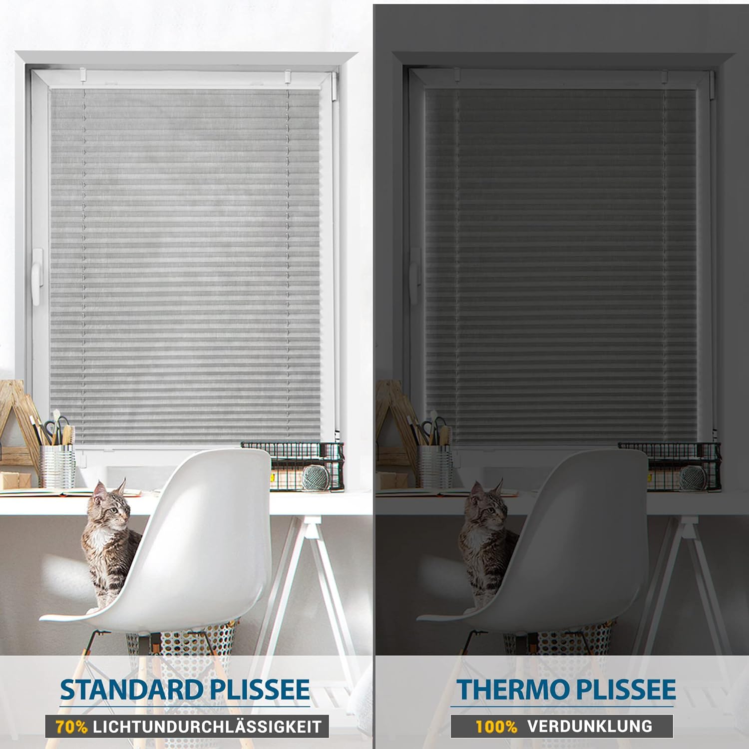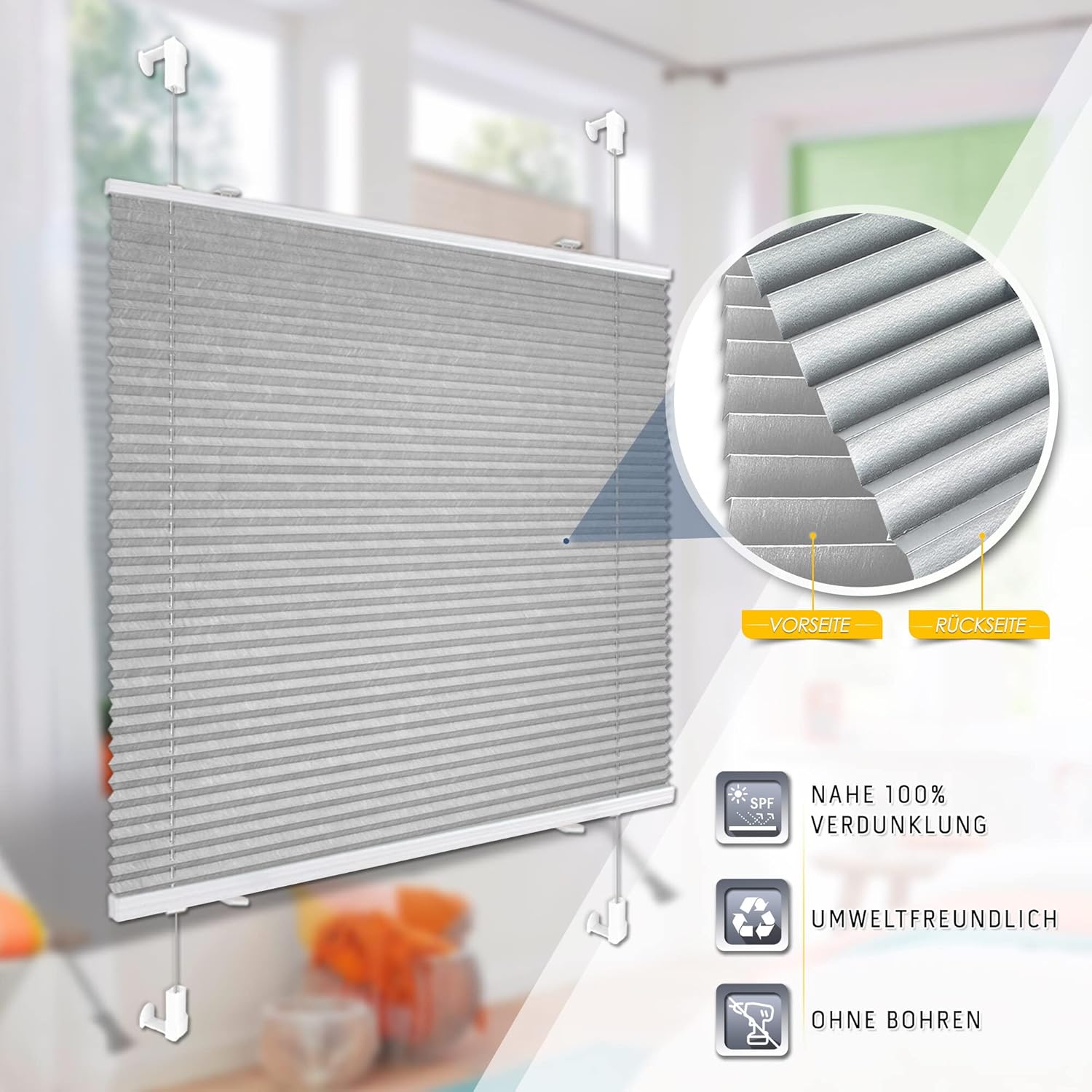 bobodeco Plissee ohne Bohren verdunkelung Klemmfix, Thermo Plisseerollo Hellgrau @ 45x120cm (BxH), Verdunklungsplissee mit Klemmträger, Sonnenschutz, 100% Blickdicht Rollos für Fenster & Tür
