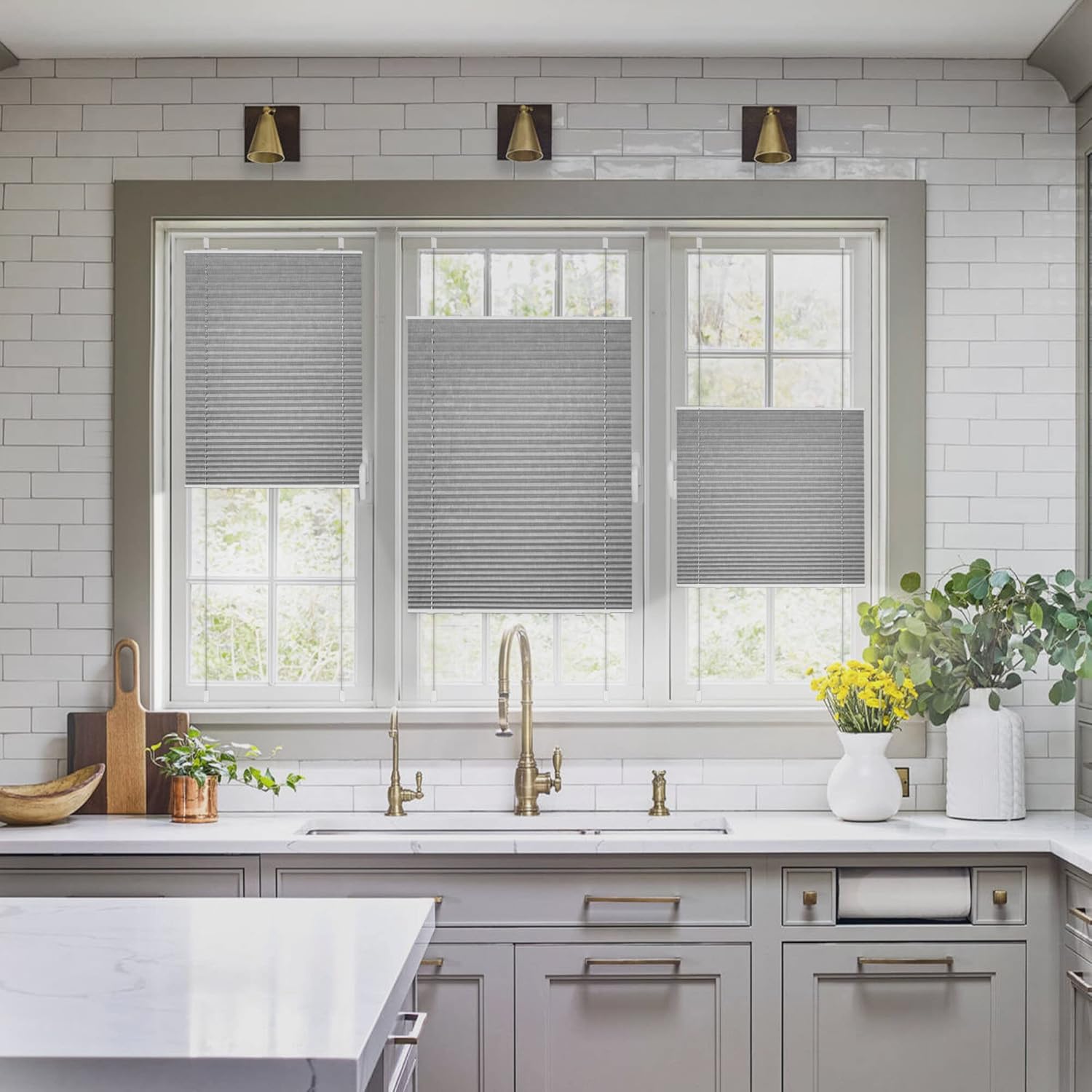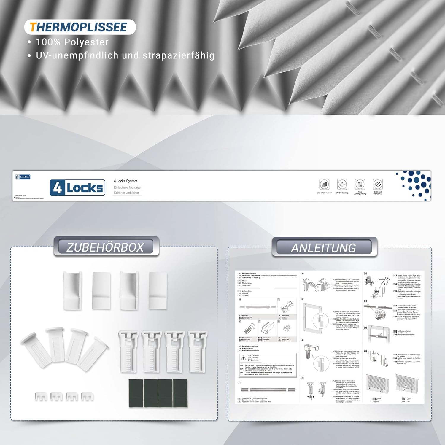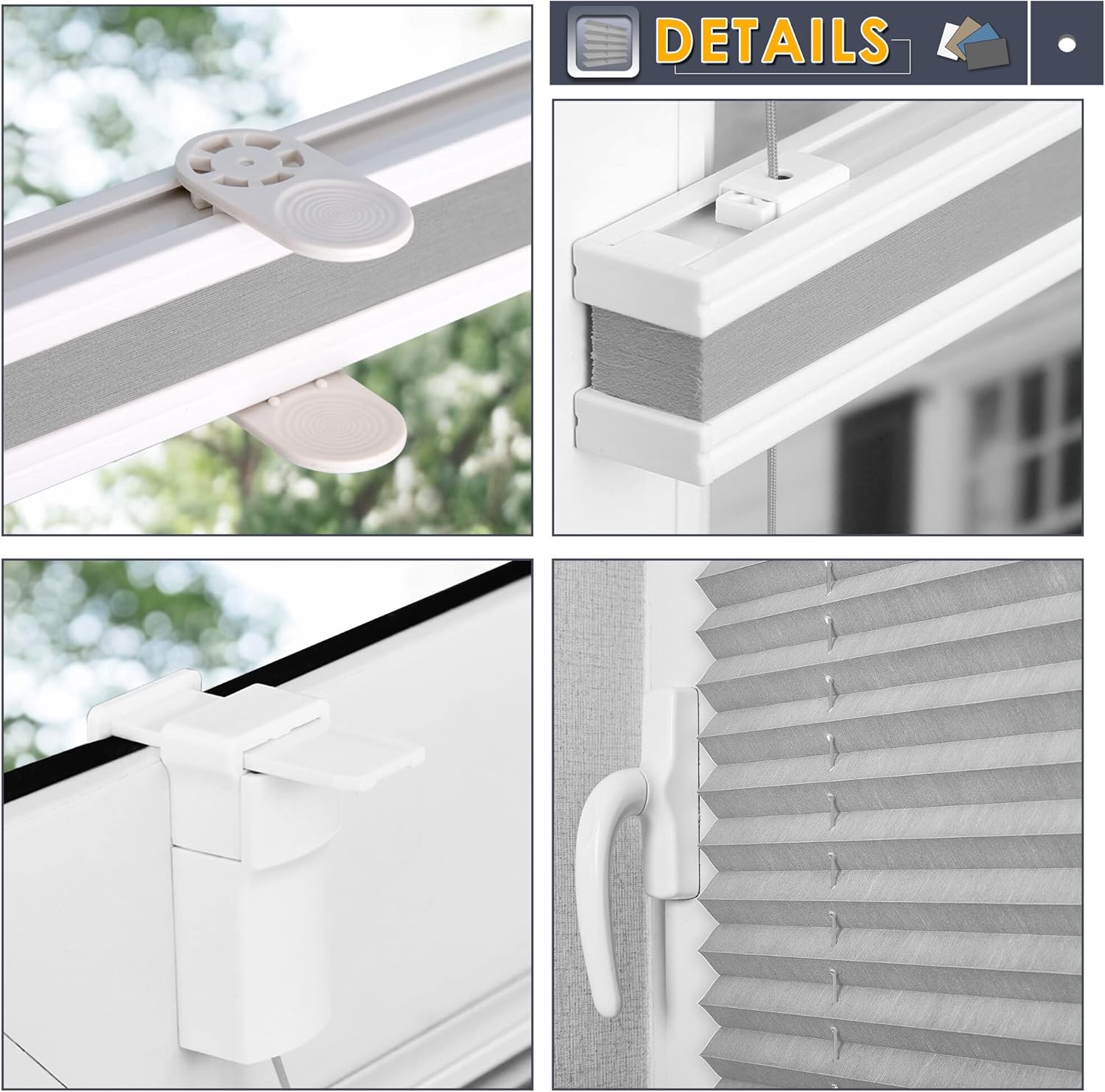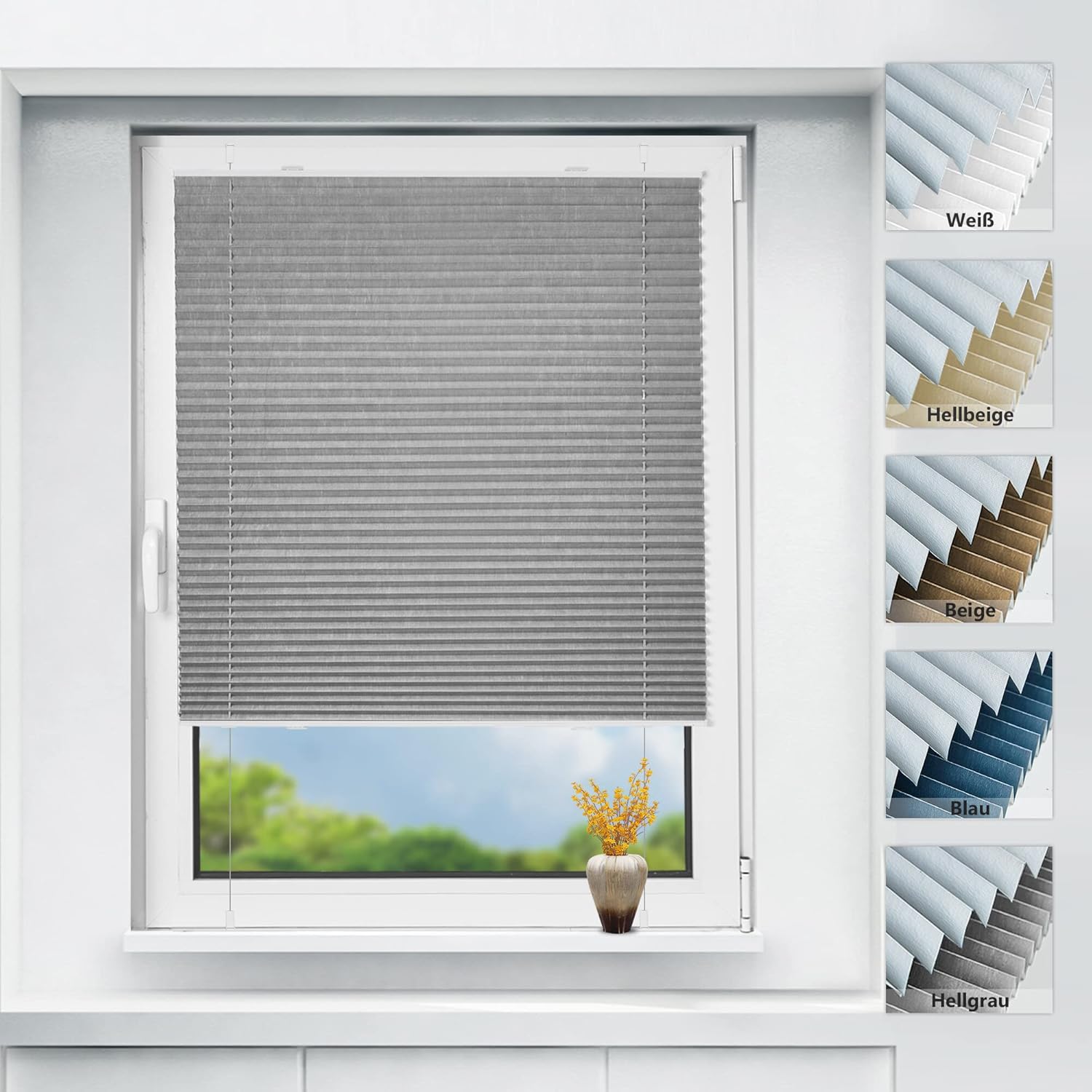 bobodeco Plissee ohne Bohren verdunkelung Klemmfix, Thermo Plisseerollo Hellgrau @ 45x120cm (BxH), Verdunklungsplissee mit Klemmträger, Sonnenschutz, 100% Blickdicht Rollos für Fenster & Tür