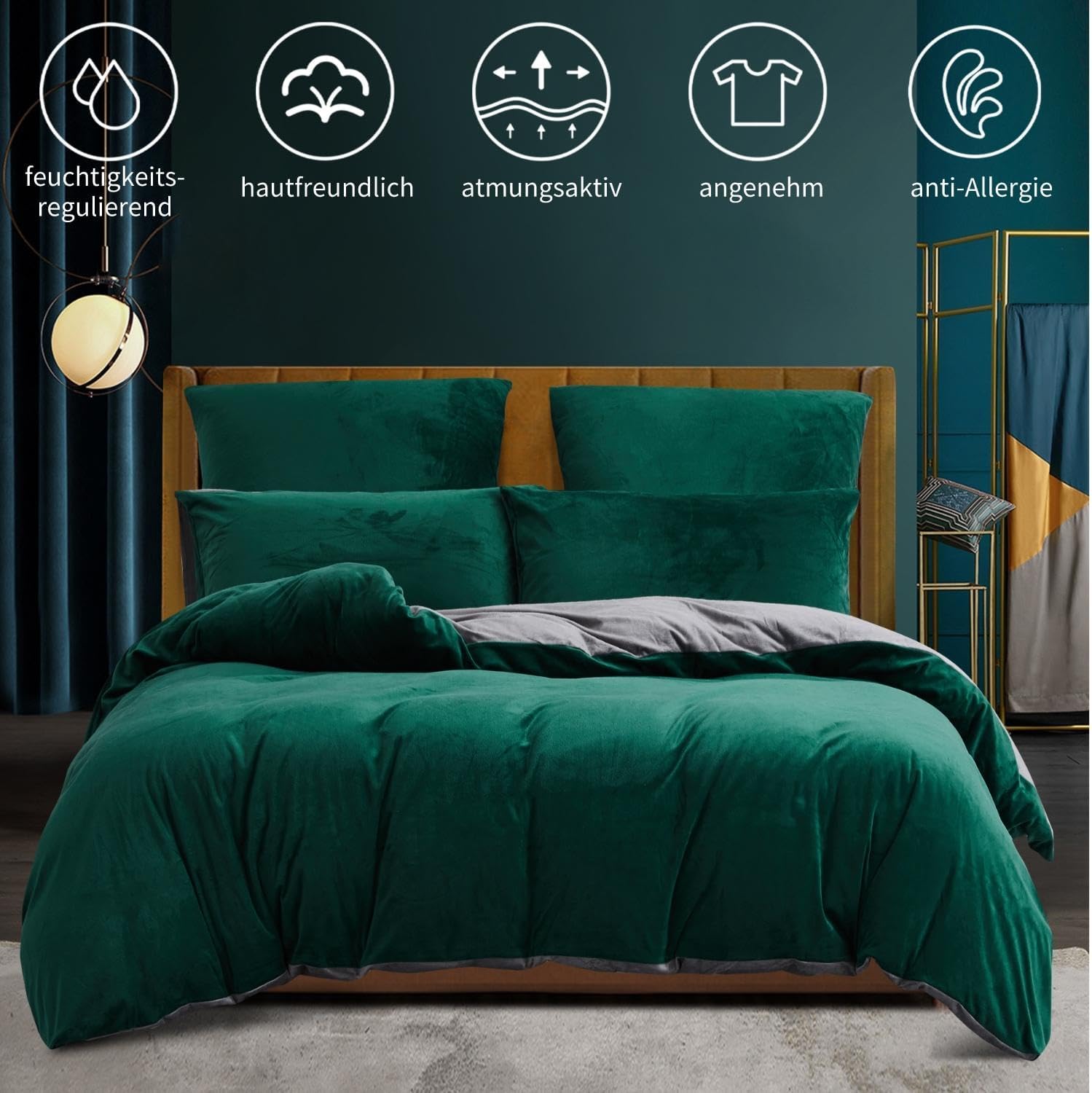 Die Bettwäsche ist wunderbar kuschelig und hält schön warm, perfekt für die kalte Jahreszeit. Die Farbe Dunkelgrün wirkt hochwertig, der Reißverschluss funktioniert einwandfrei und die Verarbeitung ist solide. Nach dem Waschen bleibt sie weich und fusselt kaum. Insgesamt ein sehr gutes Produkt zum fairen Preis, gerne wieder.