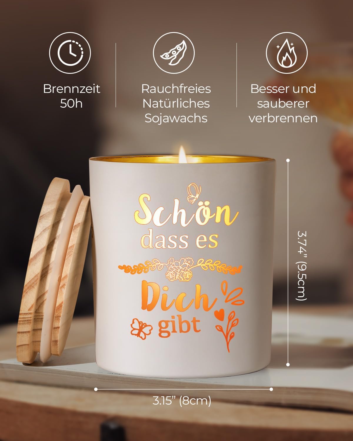 - 🎁【Umweltfreundlich und wiederverwendbar】 Diese Duftkerze ist handgefertigt aus hochwertigem Sojawachs und natürlichem ätherischem Öl. Dieses Sojawachs brennt schön, sauber und umweltfreundlich! Das Wachs lässt sich leicht mit heißem Seifenwasser aus dem Glas entfernen und das Glas kann wiederverwendet oder recycelt werden