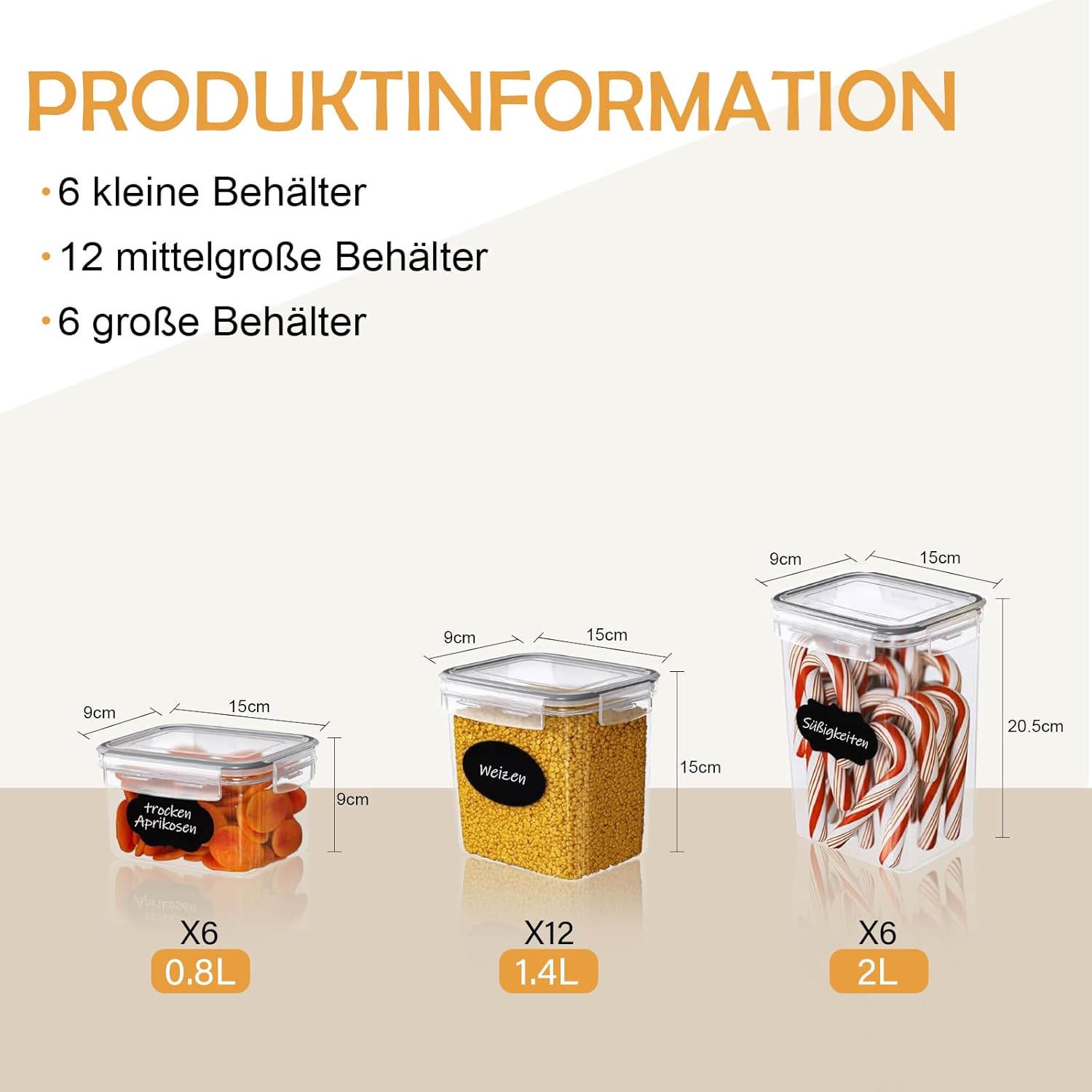 - 24 pieces combination: storage jars contains 6 medium boxes (2 litres), 12 small boxes (1.4 litres) and 6 mini boxes (0.8 litres), meets the different storage needs, categorised storage of ingredients, spices, additions, etc., the kitchen is tidy and tidy at a glance. Older set
