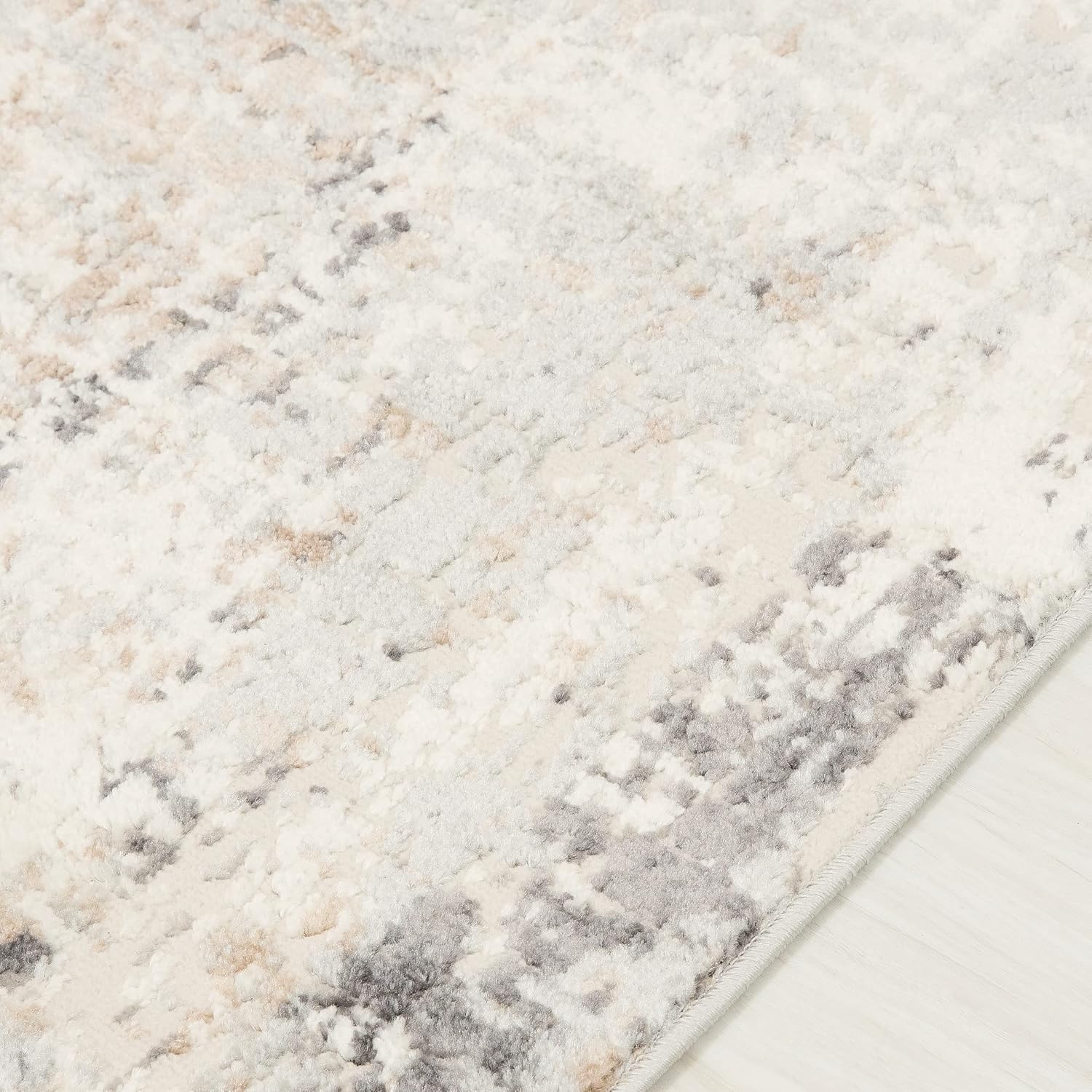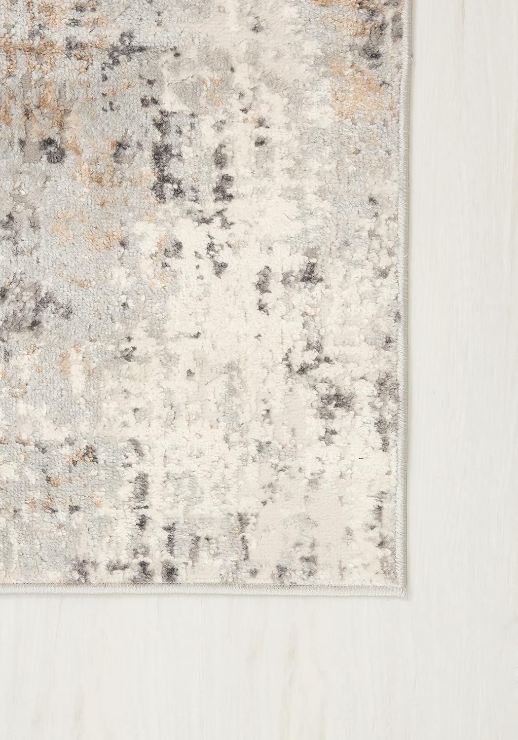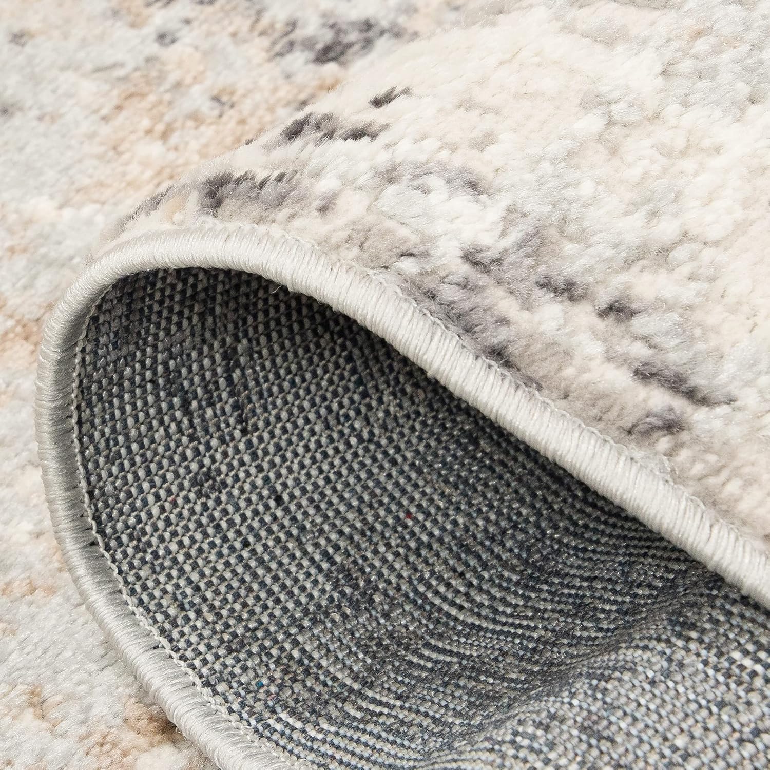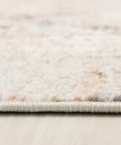 Der Teppich überzeugt mit einer angenehmen Kurzflor-Oberfläche und einem dezenten, abstrakten Vintage-Design in Beige und Grau, das gut zu verschiedenen Einrichtungsstilen passt. Er fühlt sich weich an, wirkt solide verarbeitet und eignet sich gut für Wohnzimmer, Schlafzimmer oder Esszimmer.