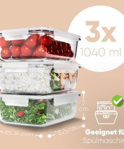 - 3er Set Glas Frischhaltedosen mit Deckel in praktischer Größe (3x 1040 ml)