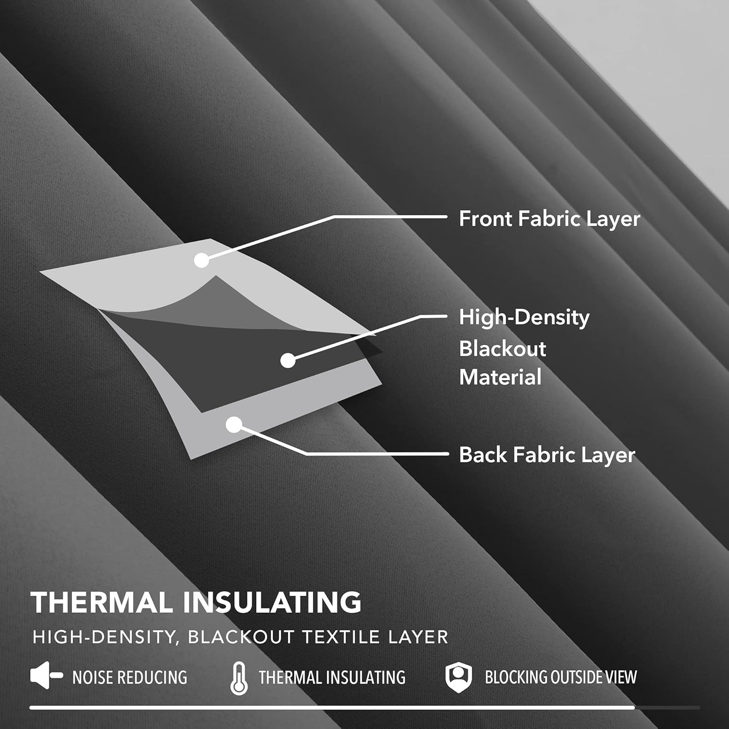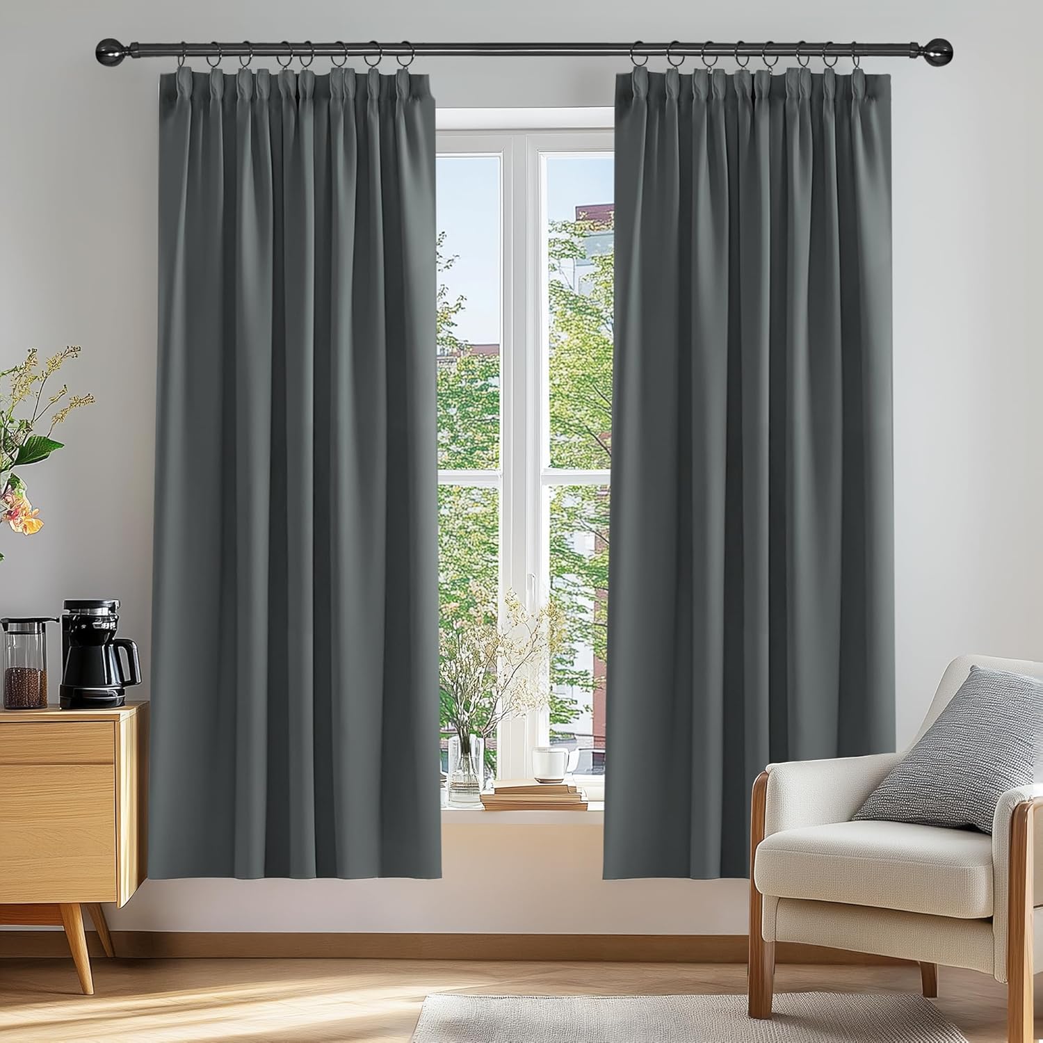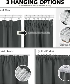 Deconovo Vorhänge mit Kräuselband Blickdicht Kälteschutz Vorhang Verdunkelung Gardinen Wohnzimmer, 175×140 cm(HöhexBreite), Dunkelgrau, 2er Set