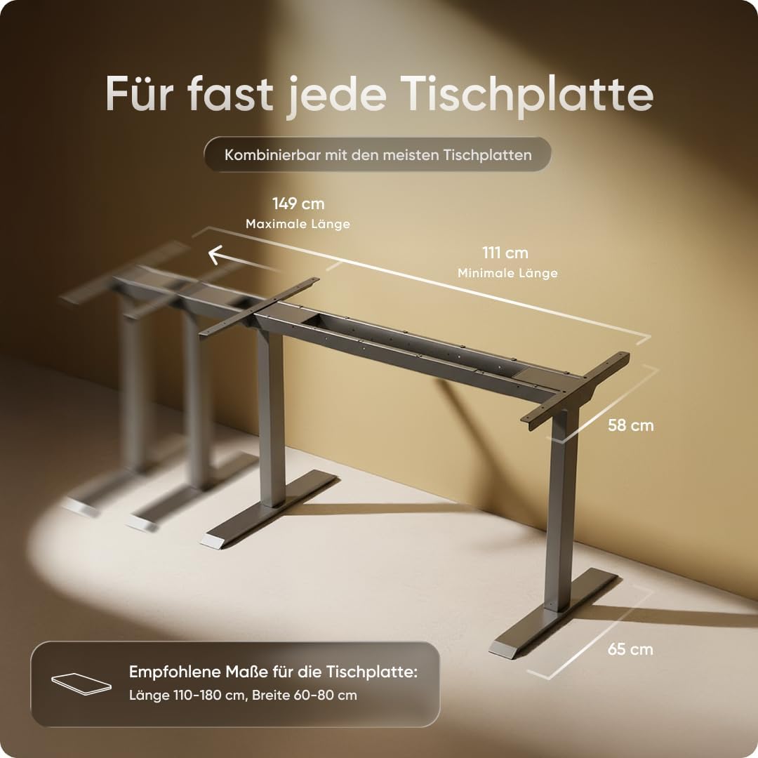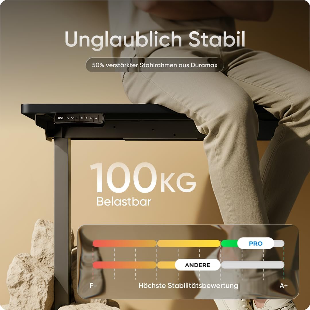 - UNGLAUBLICHE BELASTBARKEIT UND ANGENEHM LEISE – Der tischgestell höhenverstellbar enthält hochwertige Motor ist mit unter 50 dB sehr leise, selbst wenn er ein Gewicht von bis zu 100 kg bewegen muss.