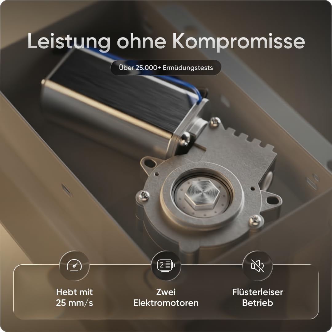 Solides, stufenlos einstellbares Gestell mit ruhigem Elektromotor und praktischer Memory-Funktion; der Aufbau verlief unkompliziert, der integrierte USB-Anschluss ist nützlich und der Kollisionsschutz vermittelt zusätzliches Vertrauen. Die fünfjährige Gewährleistung gibt Sicherheit, insgesamt ein gut verarbeitetes und zuverlässiges Schreibtischgestell. Bewertung: 5