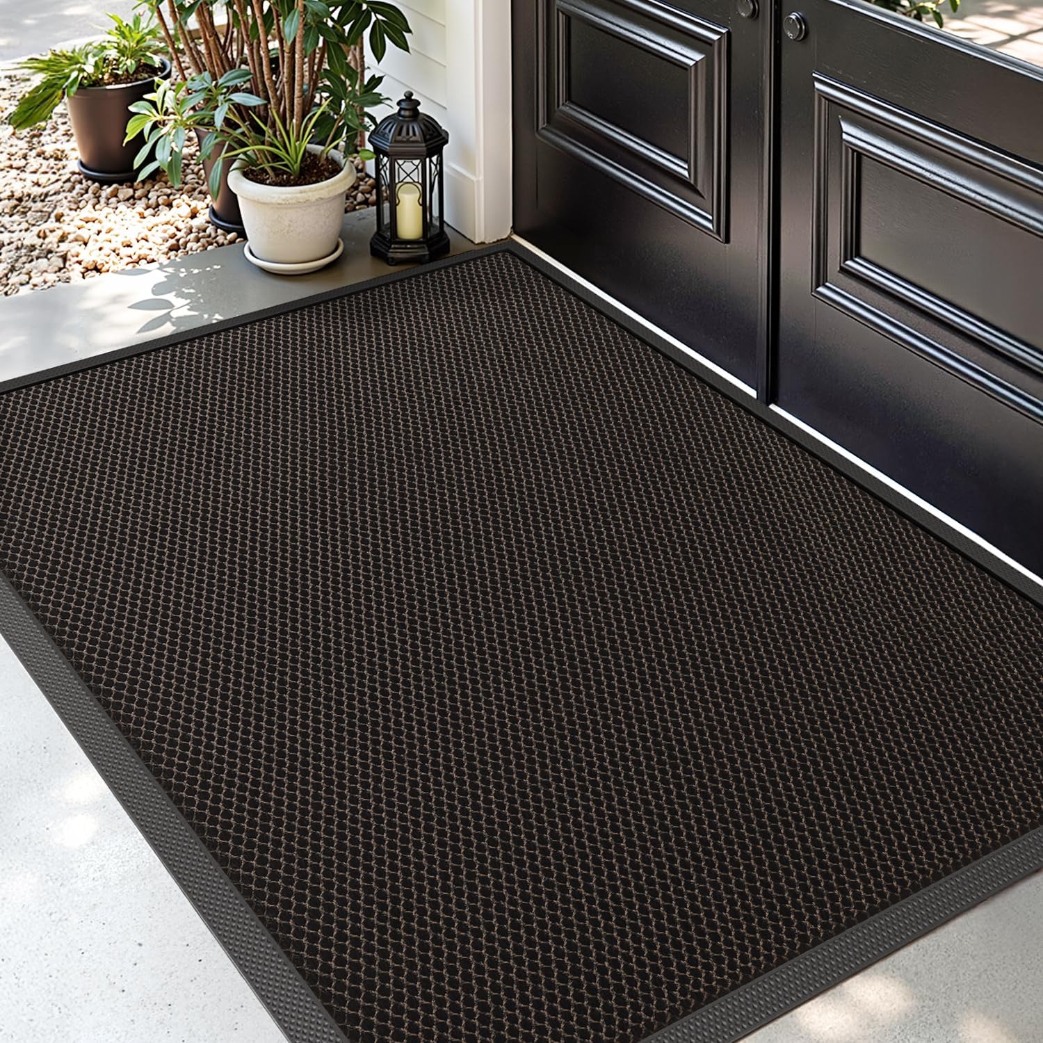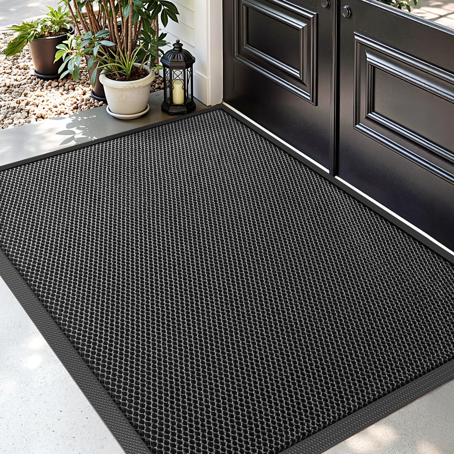 - Weatherproof & Easy Cleaning: Made of weatherproof nylon and rubber, the entrance rug is durable and easy to maintain. Shake, vacuum or rinse with the hose – it dries quickly and remains usable all year round