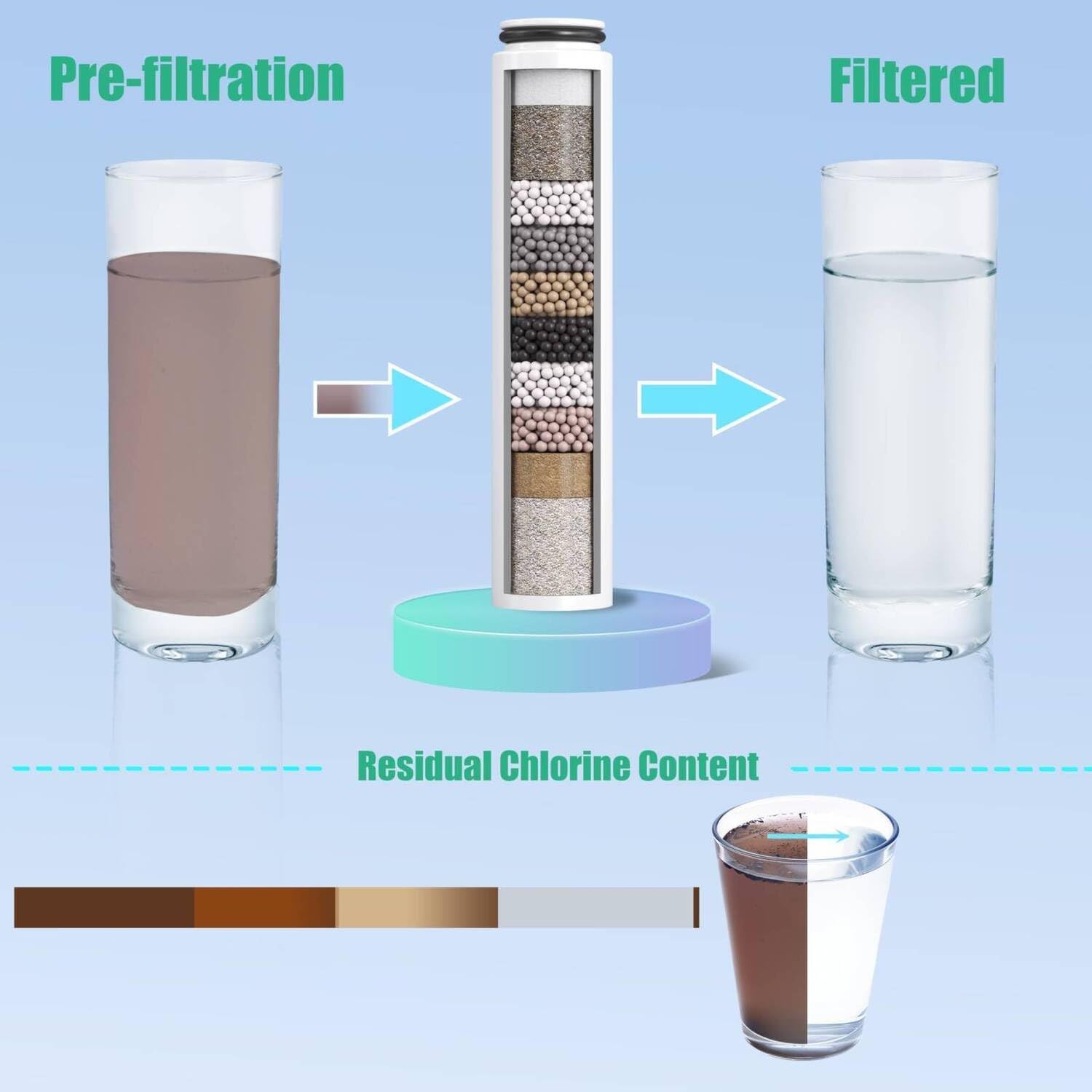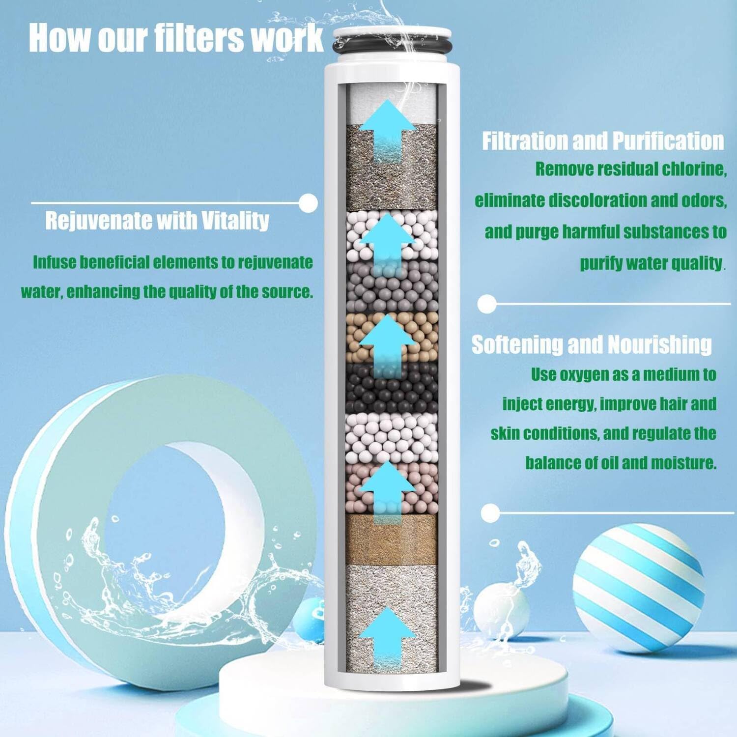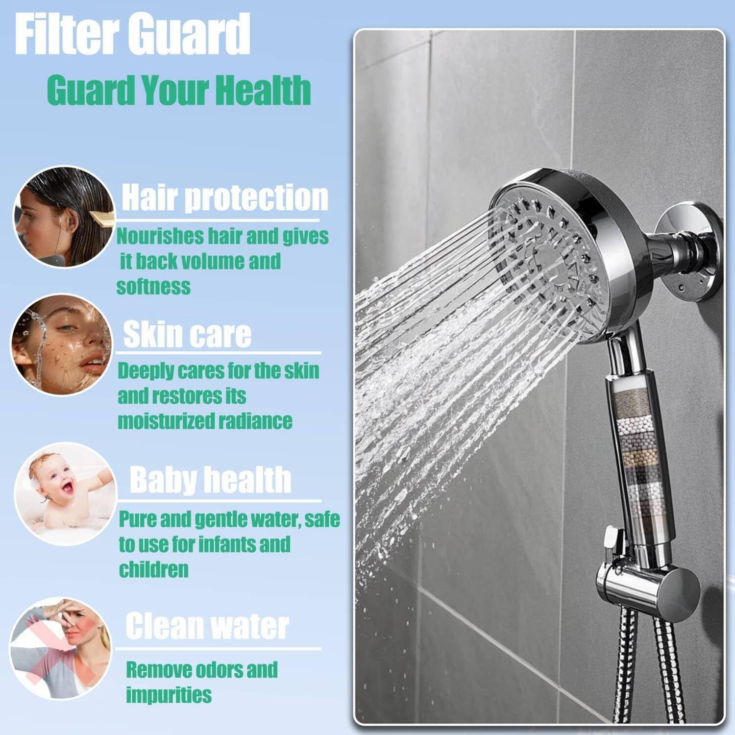 - Hochwertiges Wasserfiltersystem: Filtern Sie Ihr Duschwasser mit Kokosnussschalen-Kohle und Kupfer-Zink-Medien, um mehr als 90 % des Chlors zu reduzieren.