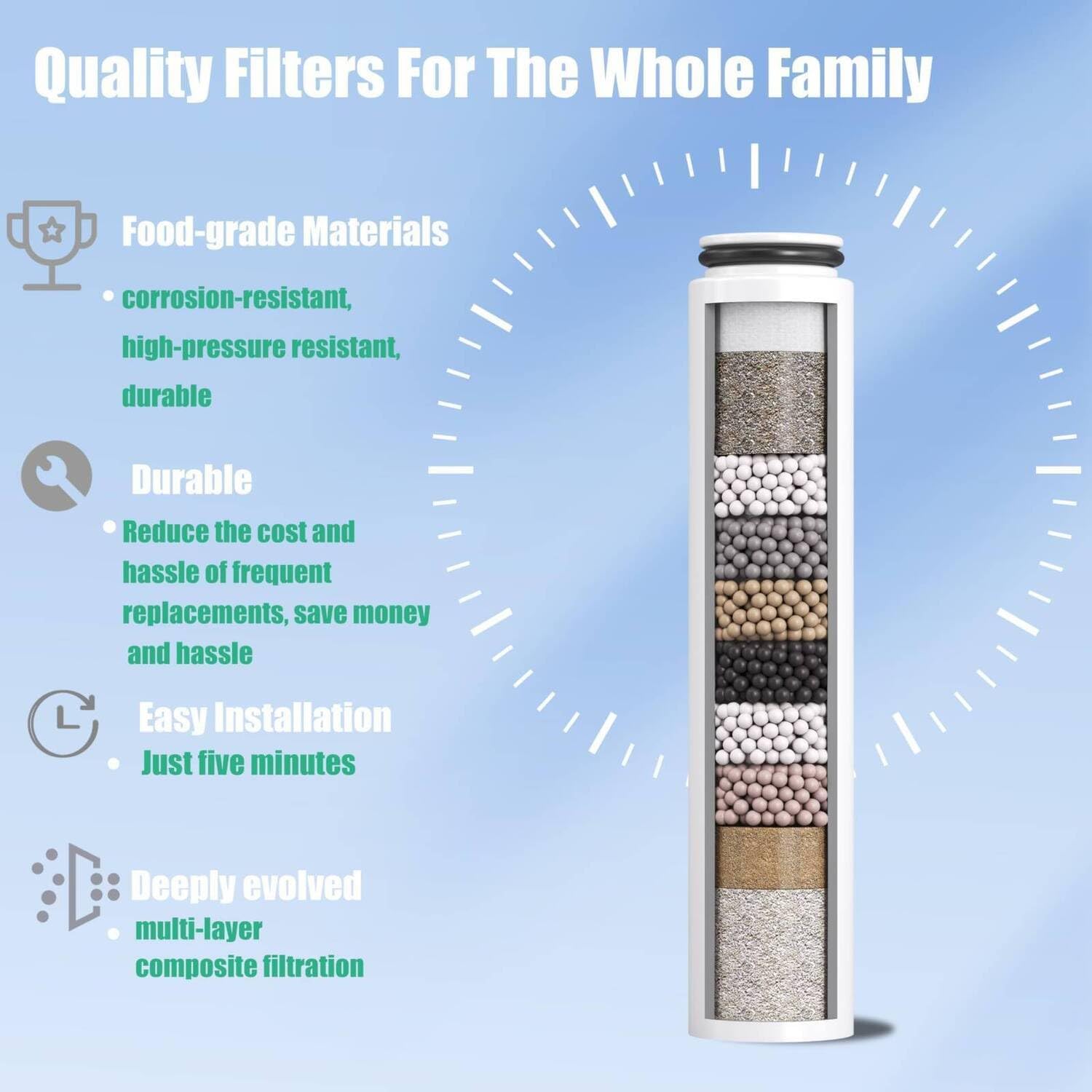 - Haltbarkeit und Langlebigkeit: Genießen Sie frisches Wasser, indem Sie Ihren Filter alle 6 Monate oder 10.000 Gallonen ersetzen. Was zuerst kommt, variiert je nach Wasserbedingungen.