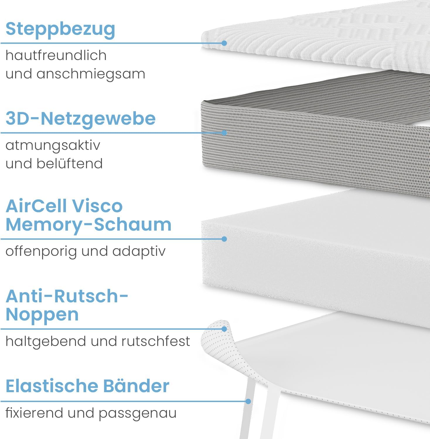 - 𝐇𝐎𝐂𝐇𝐖𝐄𝐑𝐓𝐈𝐆𝐄𝐑 𝐁𝐄𝐙𝐔𝐆: Der Aloe Vera Mattress Topper Bezug ist antibakteriell, hautfreundlich, atmungsaktiv und dank Noppen auf der Unterseite rutschfest. Er lässt sich einfach bei 30 Grad waschen.