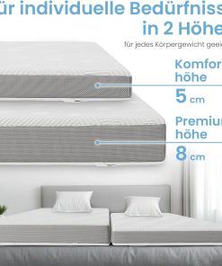 - 𝐙𝐄𝐑𝐓𝐈𝐅𝐈𝐙𝐈𝐄𝐑𝐓𝐄𝐑 𝐓𝐎𝐏𝐏𝐄𝐑: Alle Bestandteile der Bettauflage sind zertifiziert und enthalten keine Schadstoffe. Die dünne Matratze ist milbenresistent und eignet sich daher ideal auch für Allergiker.