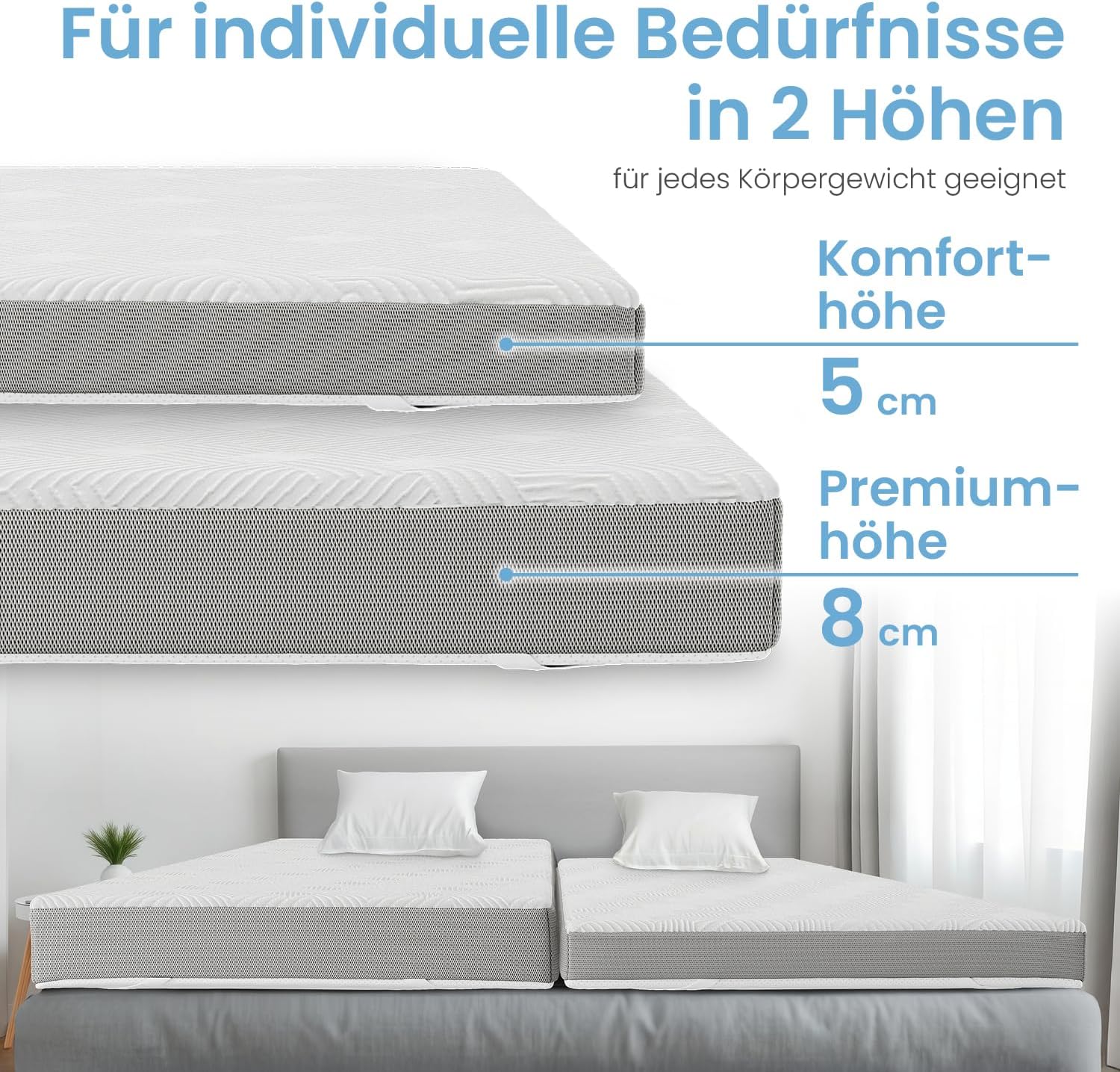 - 𝐕𝐈𝐄𝐋𝐒𝐄𝐈𝐓𝐈𝐆 𝐄𝐈𝐍𝐒𝐄𝐓𝐙𝐁𝐀𝐑: Unser Matratzentopper ist ideal für alle Betten sowie Schlafsofas und verlängert deren Lebensdauer erheblich. Er kann auch als Reisetopper oder Rollmatratze verwendet werden.