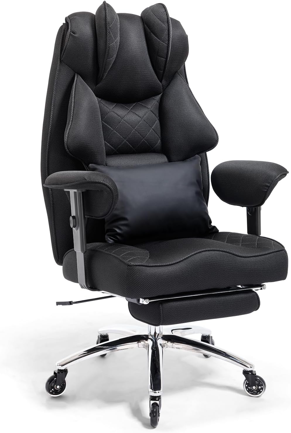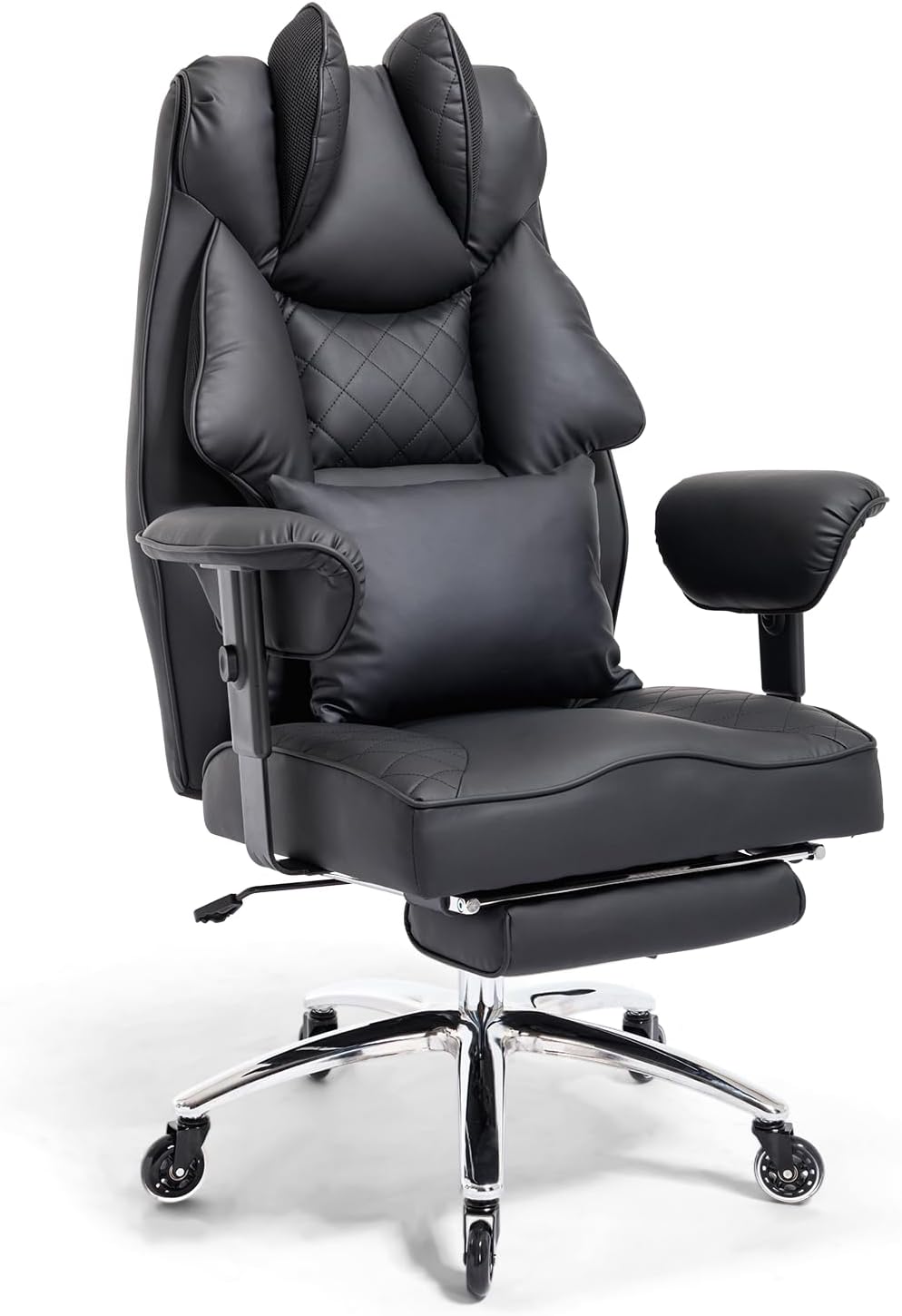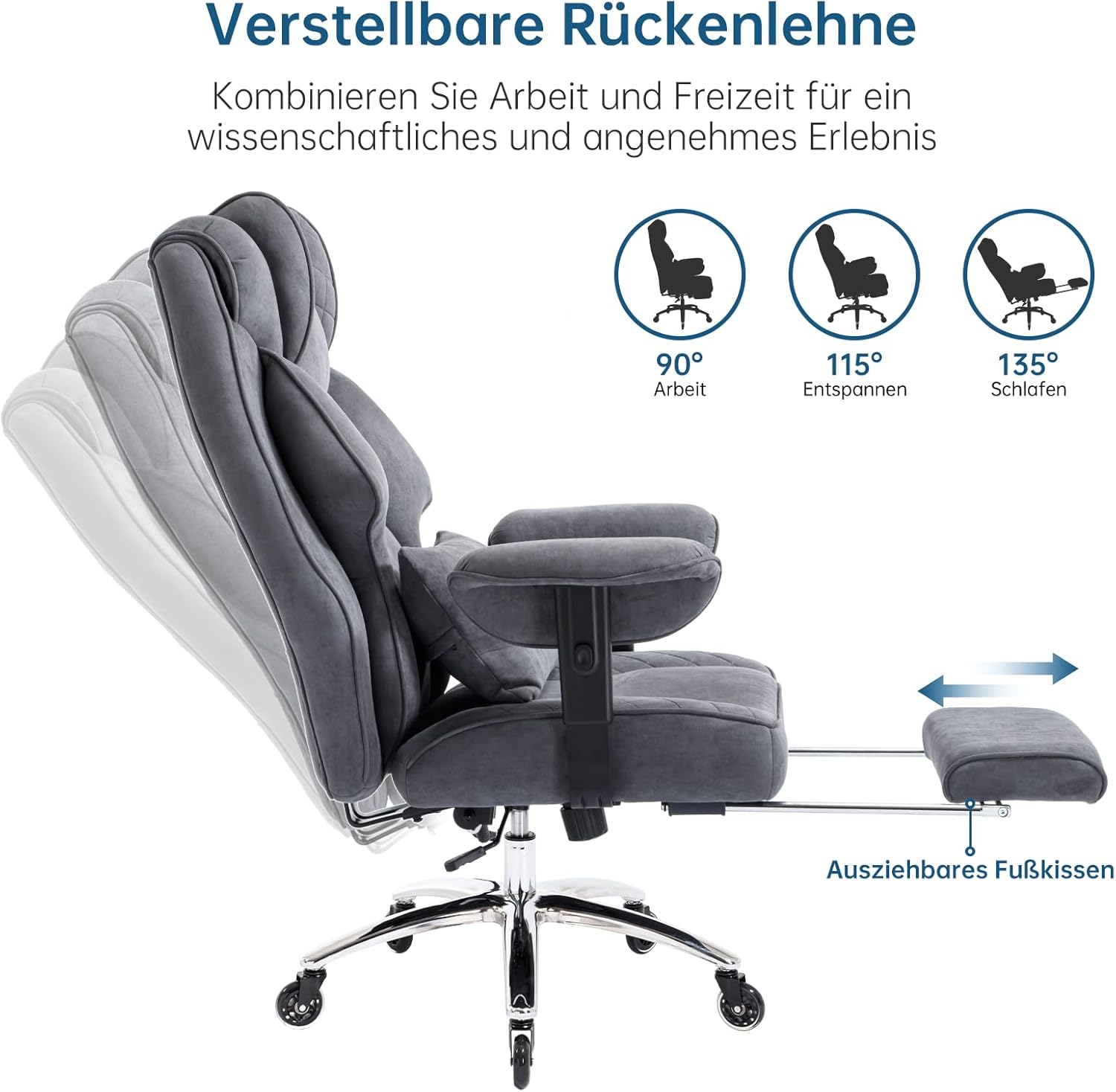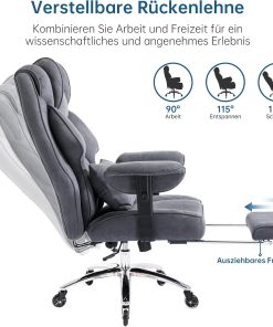 - 【Multifunctional Adjustable Executive Chair】: The office chair offers an adjustable backrest from 90° to 135°, ideal for work, relaxation or even a short nap. The adjustable footrest and padded armrests allow you to adjust the chair to your individual needs. The 360° rotation function and rubber wheels ensure effortless movement. Ideal as a computer chair, gaming chair or executive chair in the office.