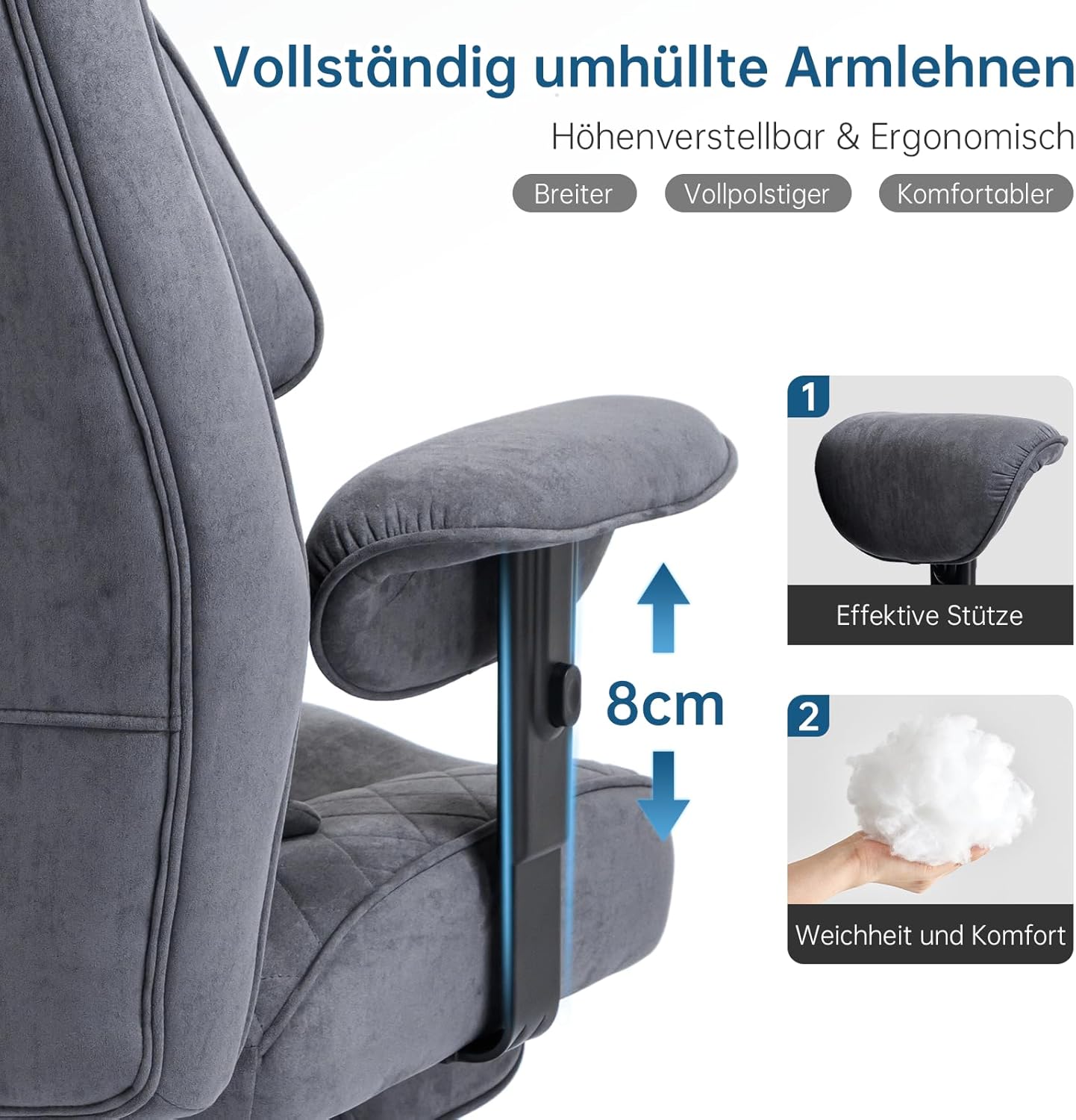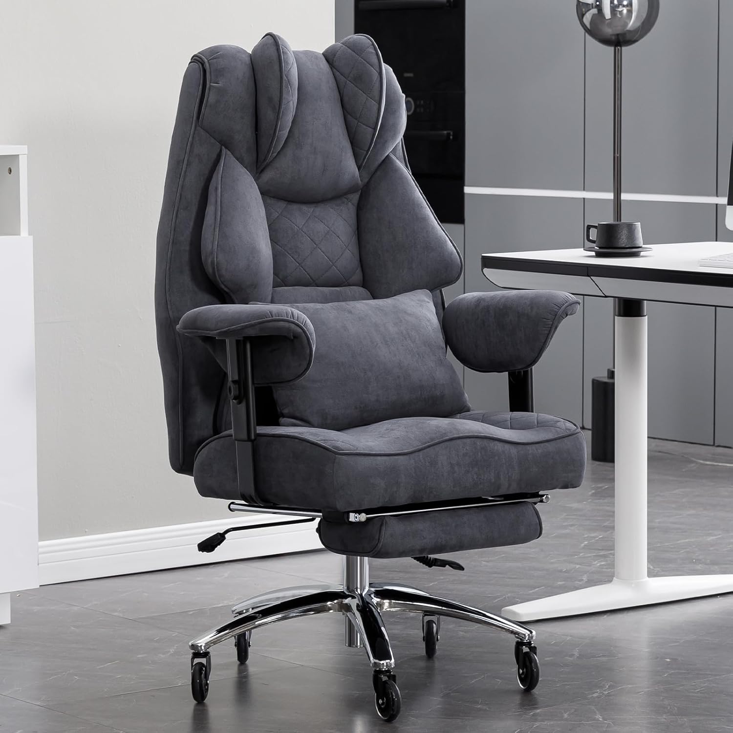 - Excellent material: the office chair is made of high-quality faux suede, which is very close to the interior fabric of luxury cars. The material is durable and wear-resistant, soft and comfortable. Compared to leather, it is more breathable, which keeps you warm in winter and minimises sweating in summer.