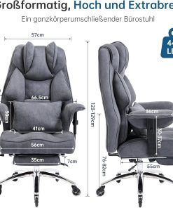 - Robust construction: our office chair offers an exceptional load capacity of 200 kg. The reinforced frame construction and extra-thick padding guarantee long-term stability and comfort. The particularly wide seat provides ergonomic relief even during long working hours – perfect for demanding users.