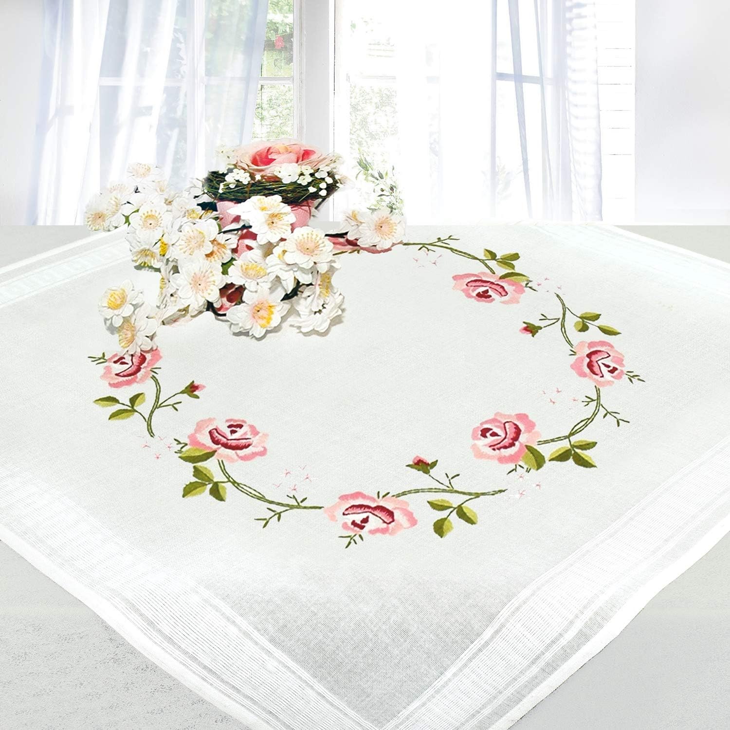 - 🧵 Wunderschönes Tischdecken Stickset (vorgezeichnet); ideal für alle Jahreszeiten. Das Rosen-Motiv wird in verschiedenen Sticktechniken wie Plattstich und Stielstich gestickt.